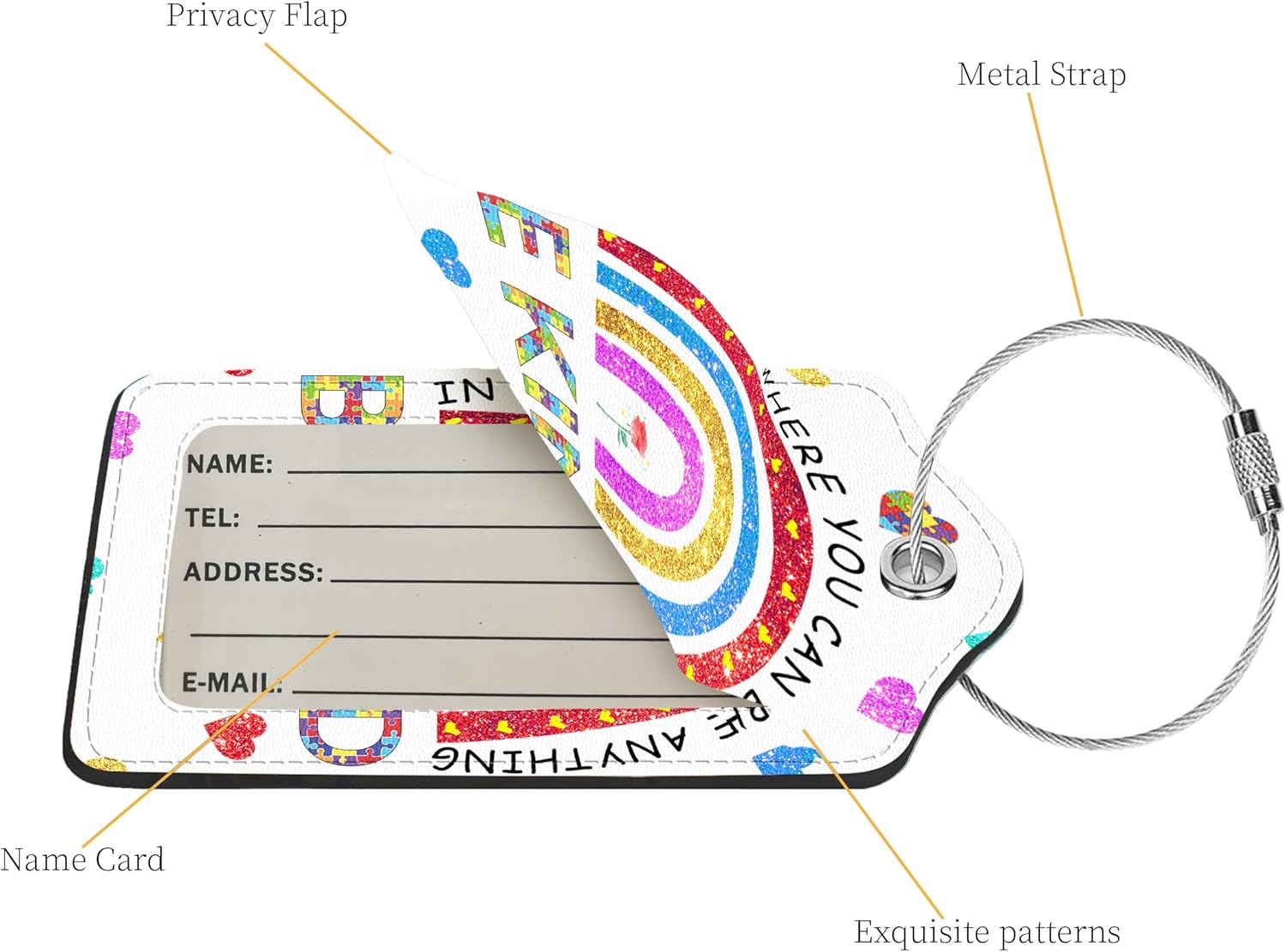 2 Pcs Luggage Tags for Suitcases, PU Leather Cruise Ship Luggage Tags with Privacy Cover Label Address Card and Durable Metal Ring Suitable for Men Women Handbags Backpacks Schoolbag,Rainbow