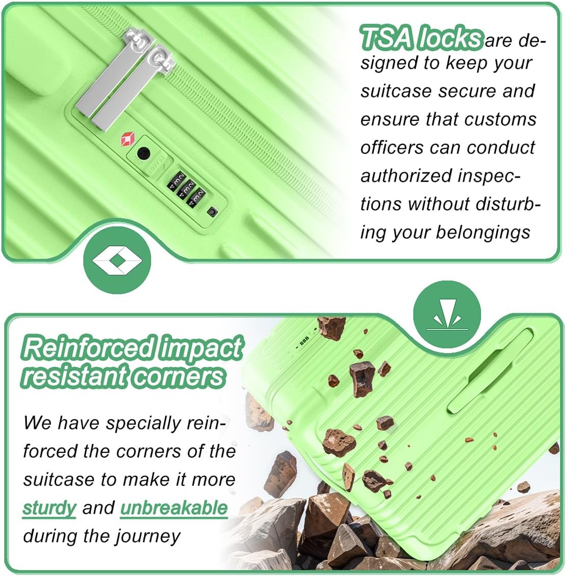 Krute Luggage with Spinner Double Wheels Suitcases with USB Port and Cup Holder TSA Lock PC+ABS Hardside Checked Luggage 28 Inch (AppleGreen