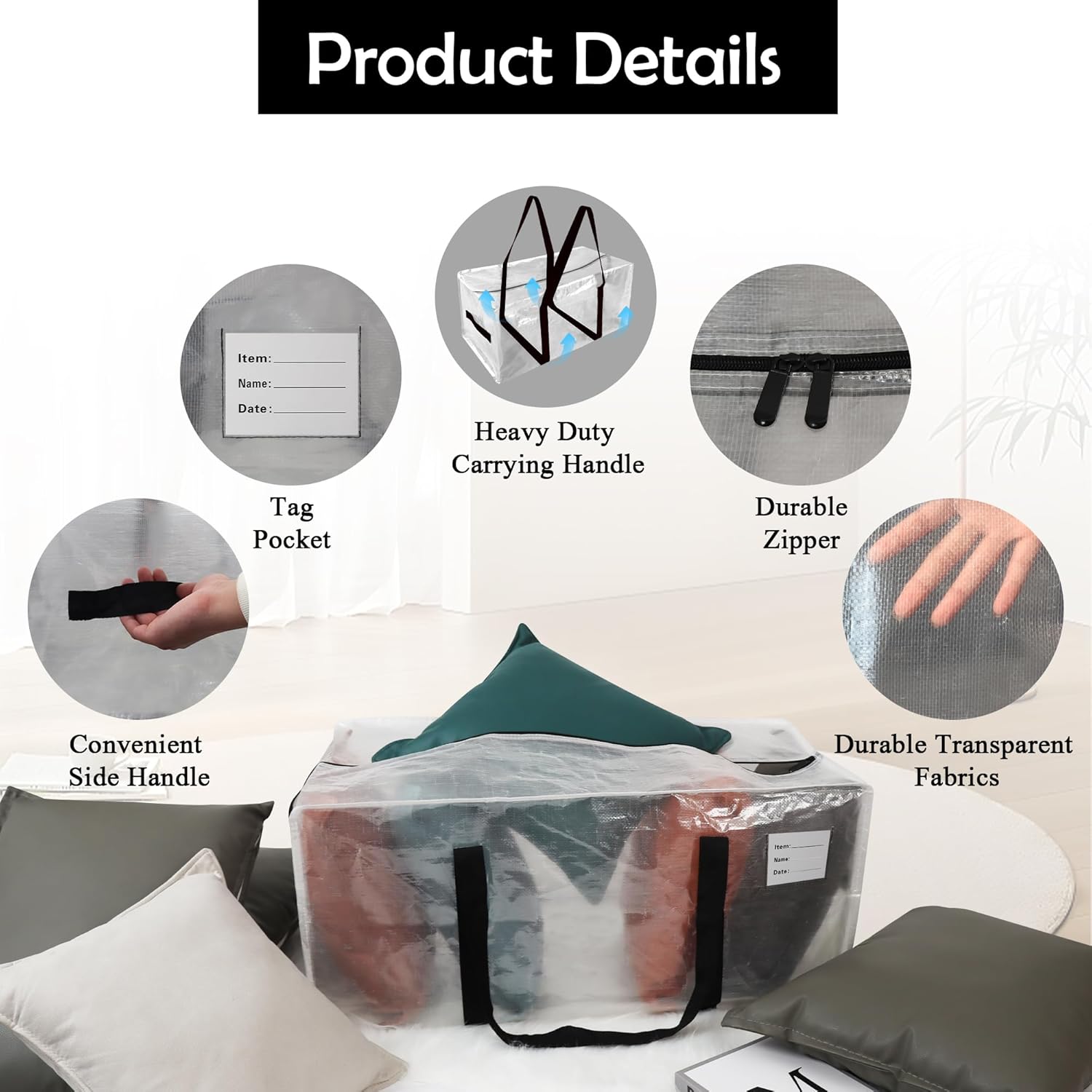 - Waterproof Large Zippered Storage Bags for Clothes & More: Organize closets or dorm rooms with these heavy-duty moving bags for clothes. Their zippered storage design and clear windows simplify labeling, replacing clothes storage boxes. With extra-large capacity and rigid bottoms, they’re ideal for winter clothes storage, travel storage bags, or large packing boxes for moving.