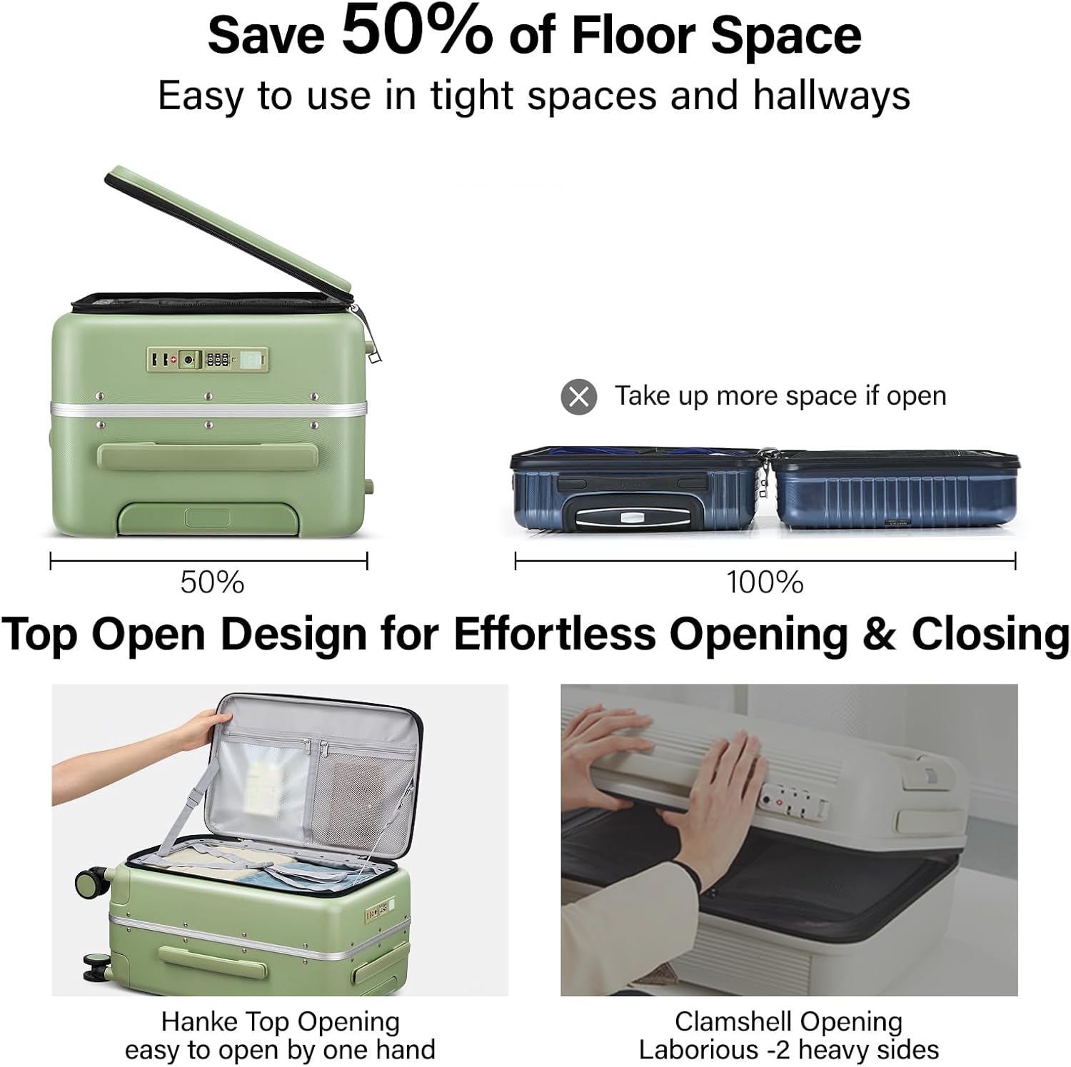 - 【Save Space & Effort】The top opening hard shell luggage is a real space-saver in a tight space compared to a suit case that zips open in the middle and has to spread out.And the top opening luggage can be opened easily with one hand, is user friendly for elder, children and someone with less effort strength.