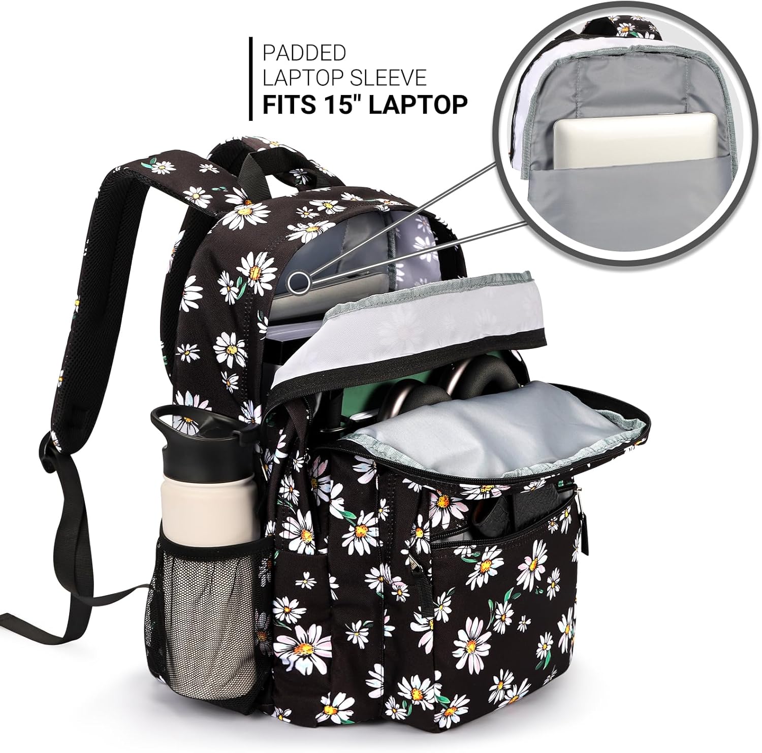 ZORFIN 26L Backpack for College, and Travel: Water Resistant Bookbag - Daisy Black