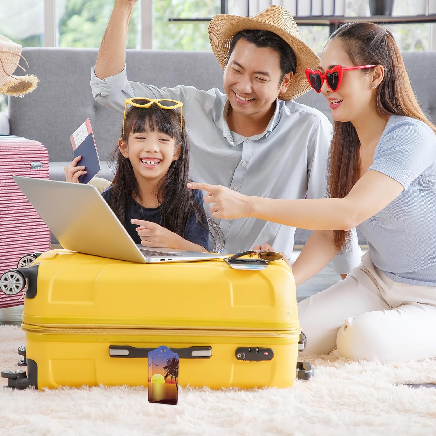 Sunset with Palmtree Silhouette 2 PCS Luggage Tags, Privacy Cover ID Label with Stainless Steel Loop and Address Card for Travel Bag Suitcase