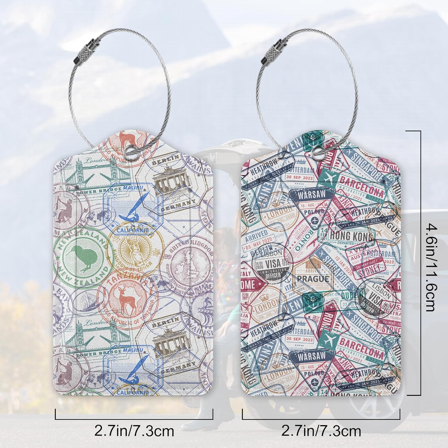 Travel Stamp,Travel Retro Labels Luggage Tags for Suitcases, 2 Pack Cute PU Leather Suitcase Tag Identifiers with Address Card for Baggage Tag