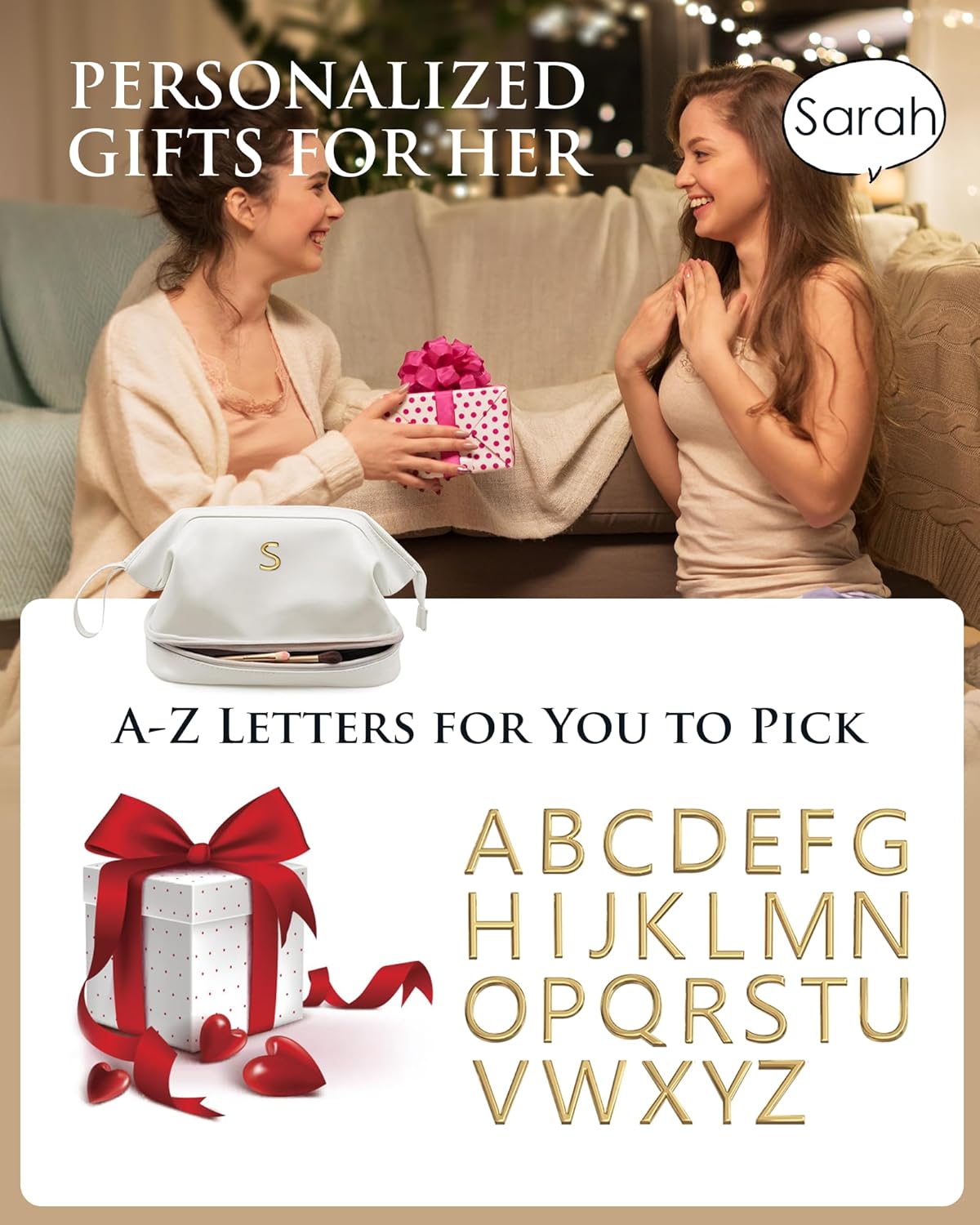 Travel Essentials for Friends Female Mom, Personalized Makeup Bag, Double Layer Cosmetic Bag with Makeup Brush Organizer, Waterproof, Large Capacity PU Leather Toiletry Bag Customized Gifts