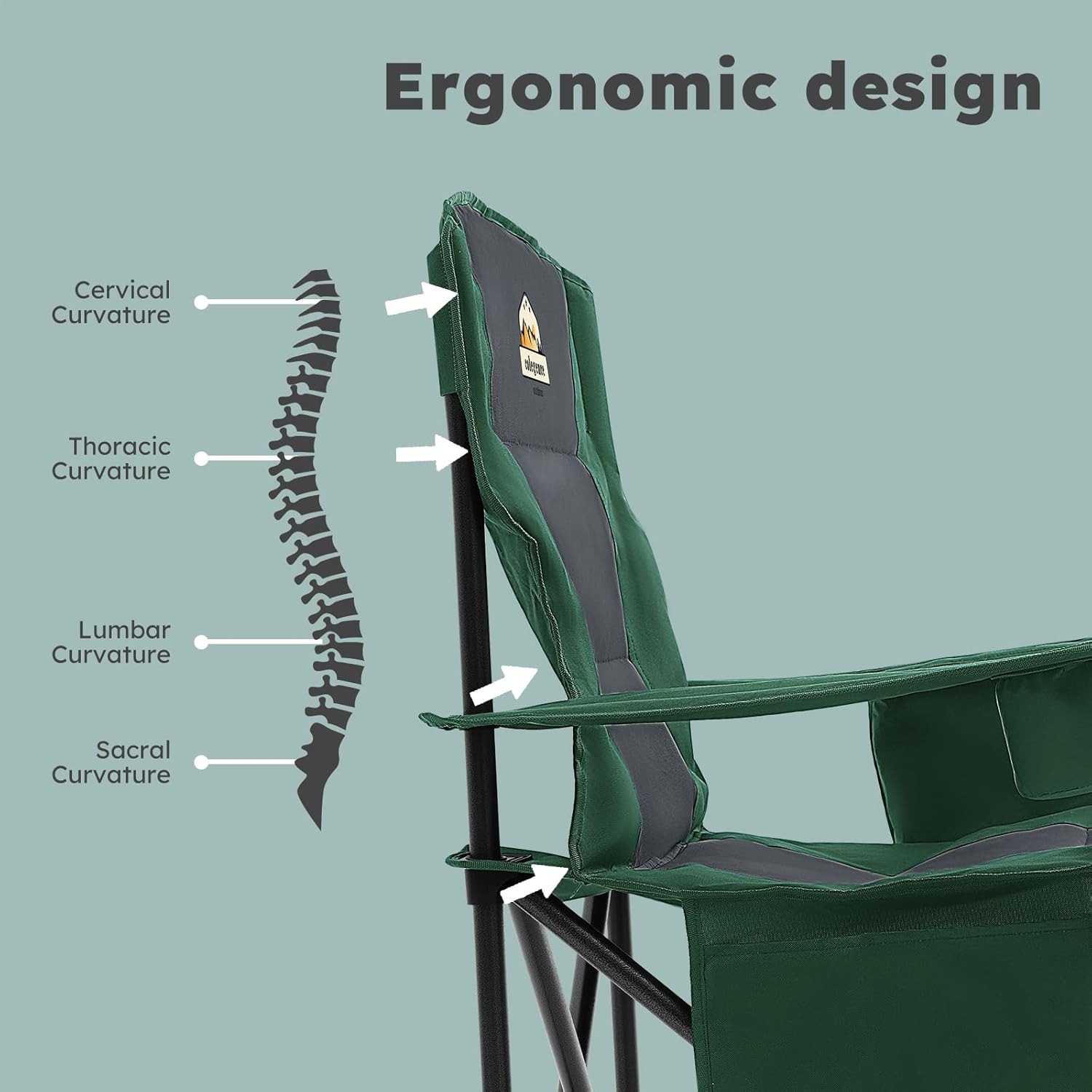 Oversized Camping Chairs 2 Pack - 450lbs Support Heavy Duty Folding Camp Chair Wide Portable Outside Collapsible Chairs with Carry Bag,Cooler,Cup Holder for Outdoor,Lawn,Sports,Baseball,Soccer-Green