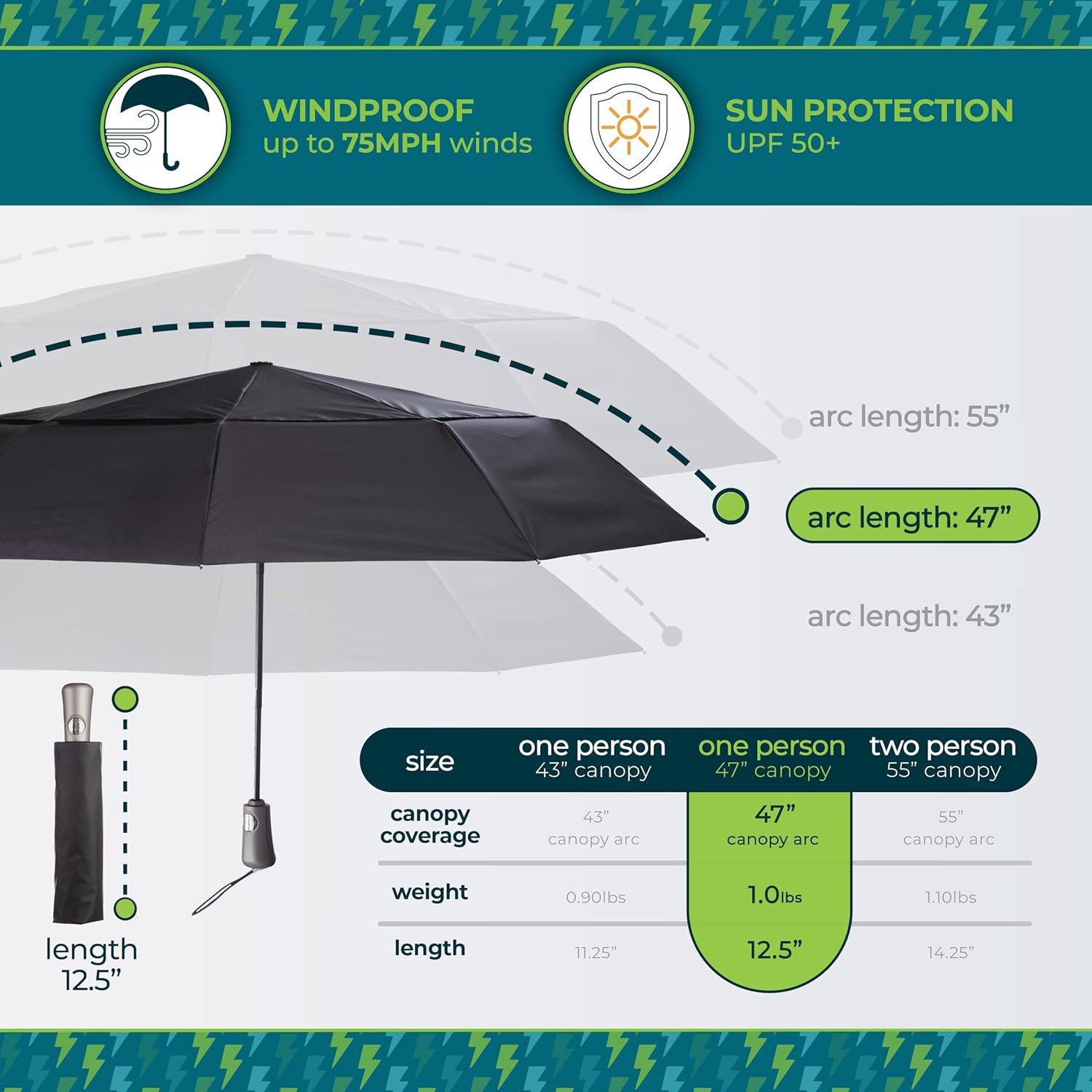 - TRAVEL FRIENDLY: Best for on the go, commuting to work, walking the park, traveling or running errands our totes Ultimate Protection Umbrella is offered in three sizes so there is something for everyone.