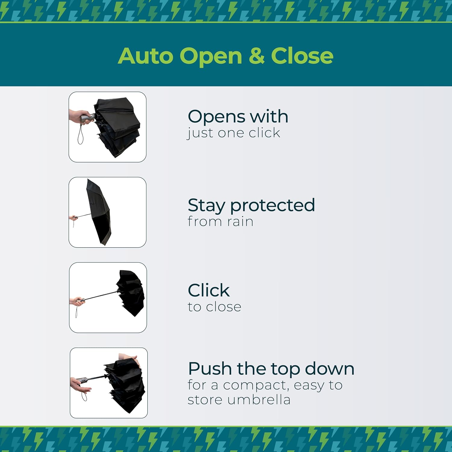 - EASY AUTO OPEN & CLOSE: Press to open, press to close - it’s that simple. Our fully automatic open and close system allows you to operate the folding umbrella one-handed while our Totes invisible water repellent coating helps rain drops roll right off.