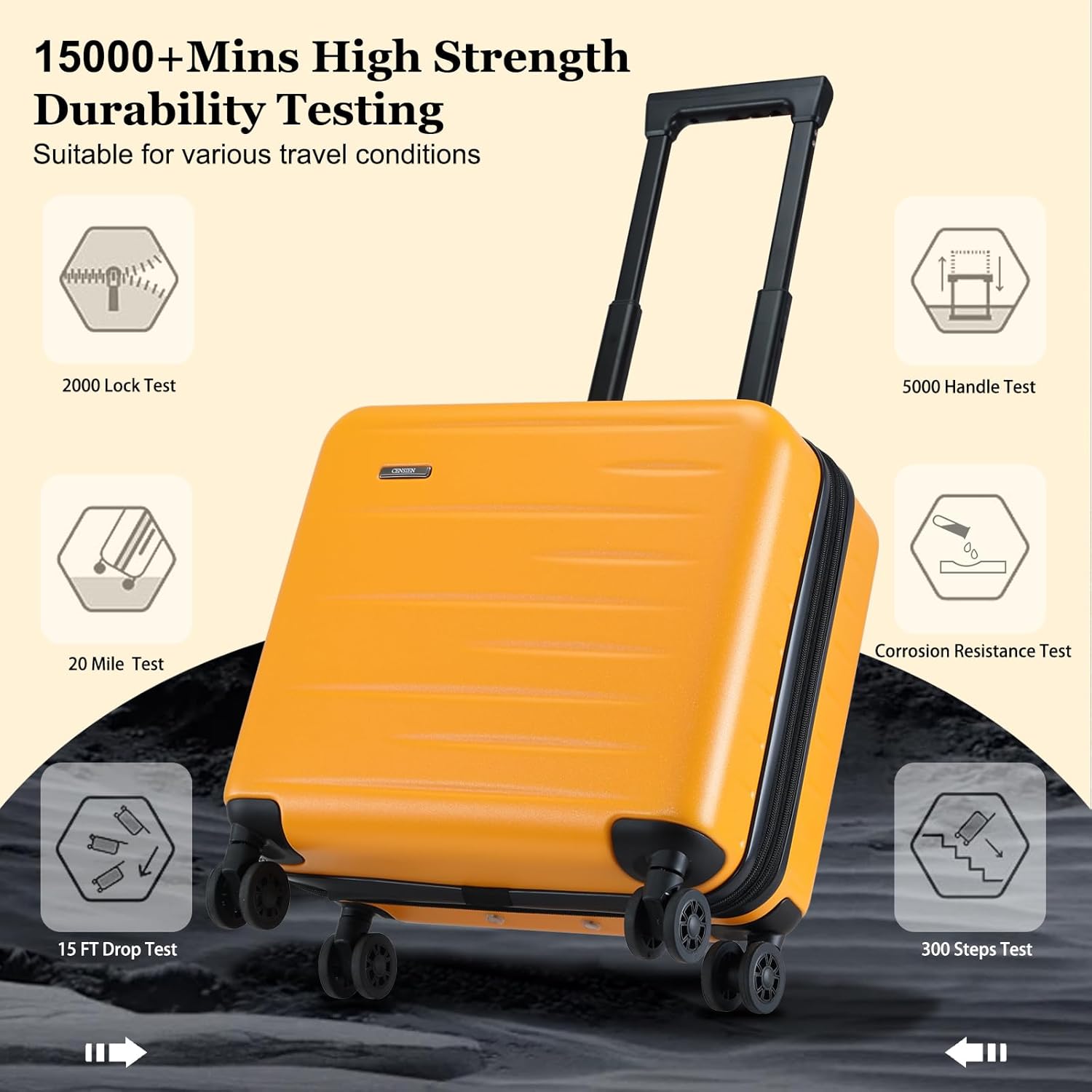 16 Inch Carry On Luggage Airline Approved, Expandable Lightweight ABS+PC Hard Shell Suitcases with 360° Spinner Wheels, TSA Lock, YKK Zippers (Orange, 1 PC)