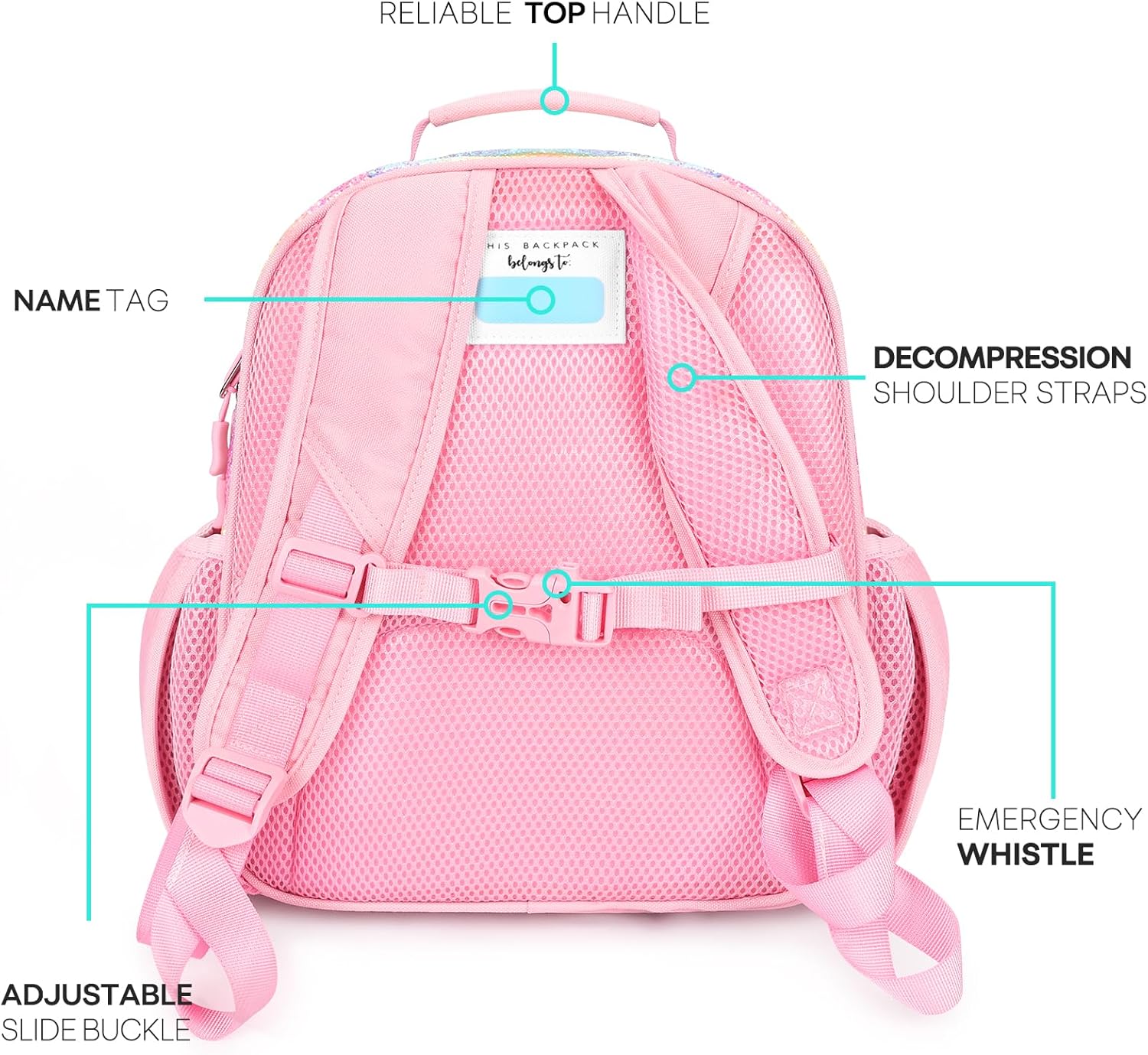 - LIGHTWEIGHT DESIGN - This preschool backpack for girls sized backpacks are perfect for preschool or playful toddlers. The thickened and decompressed shoulder straps can reduce the pressure on the shoulders and keep the backpack from being too heavy, which is a kind of protection for children. There is also a handle on the top of the backpack, which allows the bag to be carried by hand or carried on the back.