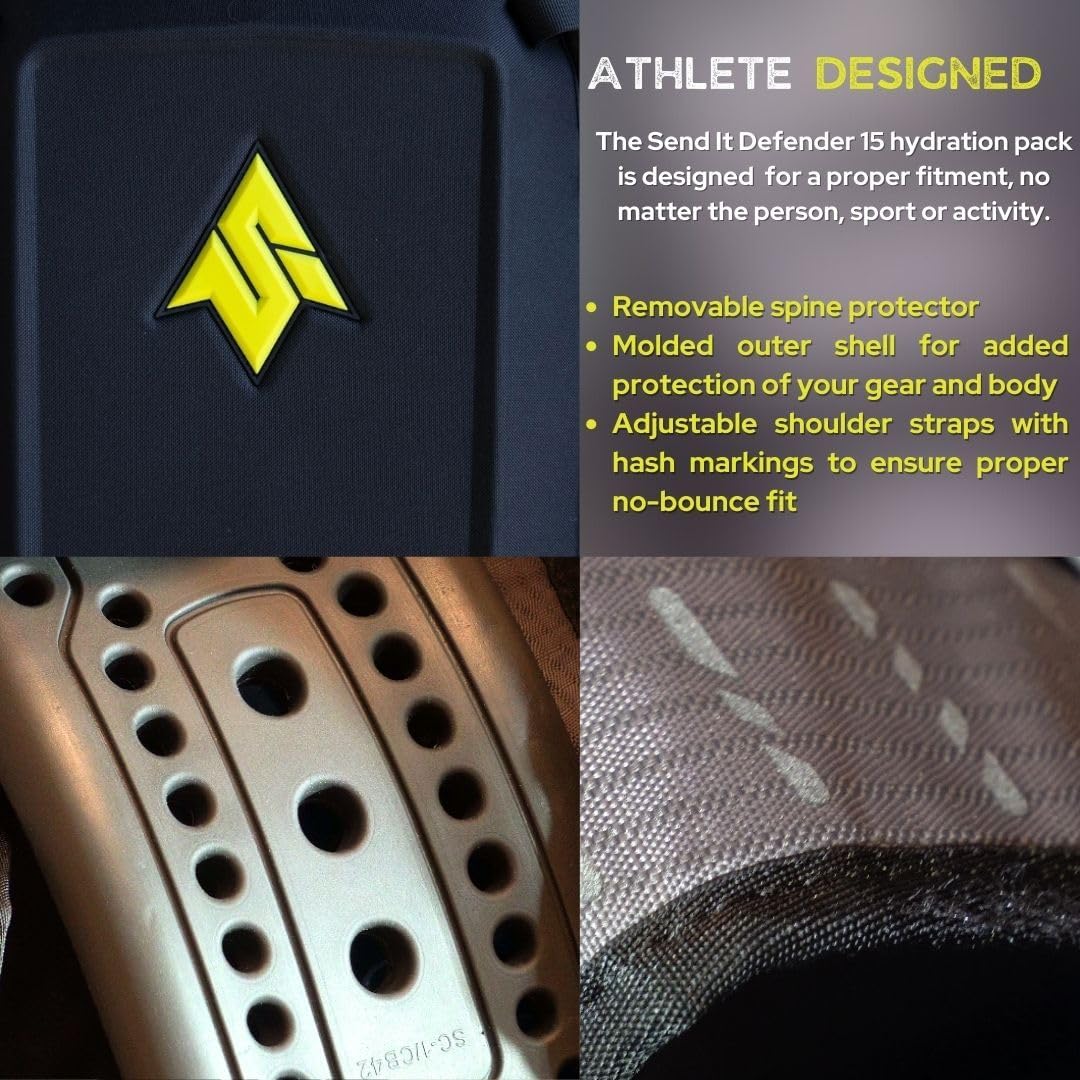 Send It Defender 15 Hydration Backpack - MTB, Moto Bag with Spine Protector for Men and Women. 15L Capacity Mountain Bike Hydration Pack - Mountain Bike Protective Gear – Adjustable Fit for Everyone