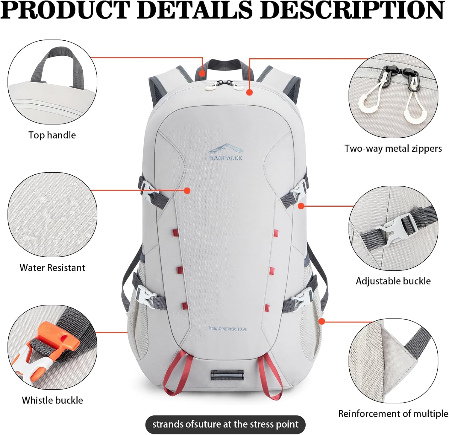 - Premium & Durable:BAGPARKK lightweight hiking backpack is made of high-quality tear and water resistant nylon fabric,Two-way metal zippers and the extra strength provided by double-layer bottom piece and enhanced by bar-tacks at major stress points provide long-lasting durability against daily activities