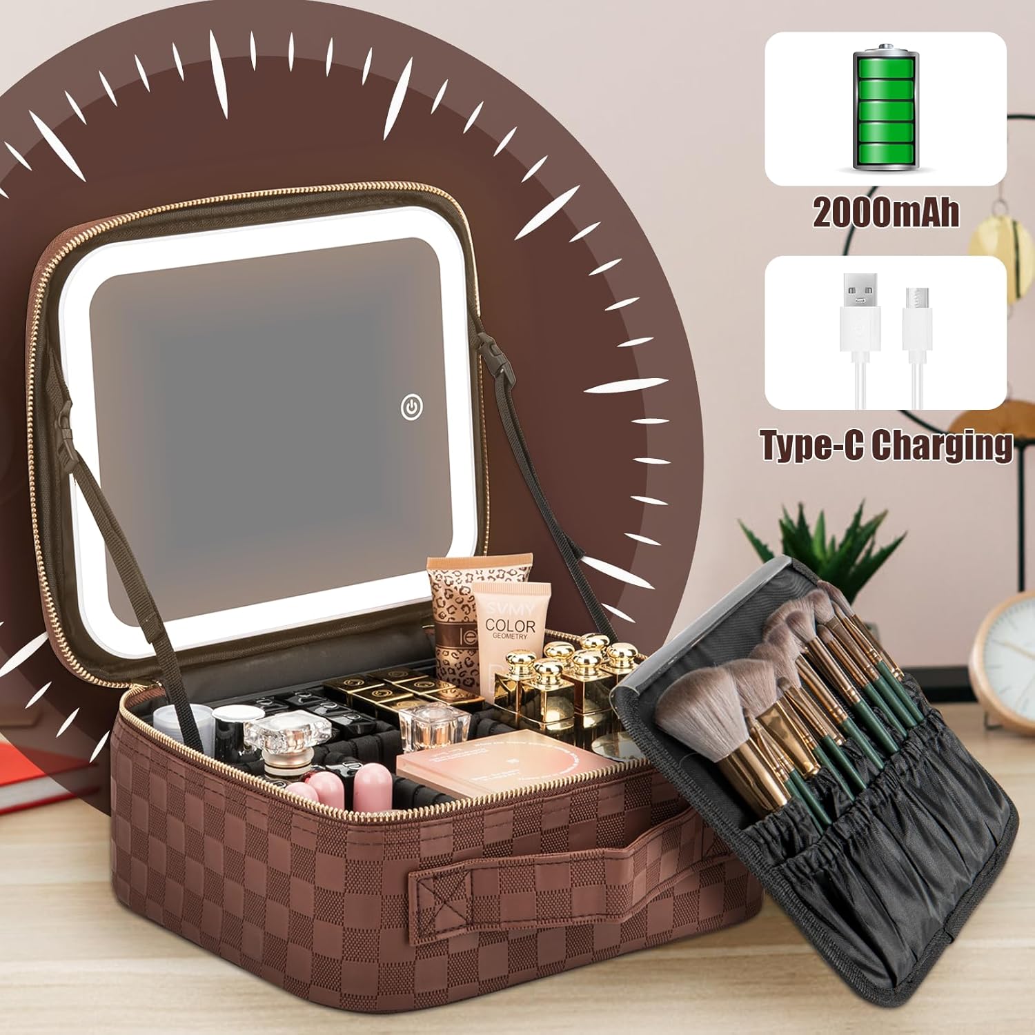 - 【Premium Material】The vanity case is made of delicate synthetic leather surface, waterproof and wear-resistant, ergonomic handle, electroplated light gold zipper is anti-corrosion, not easy to fade.