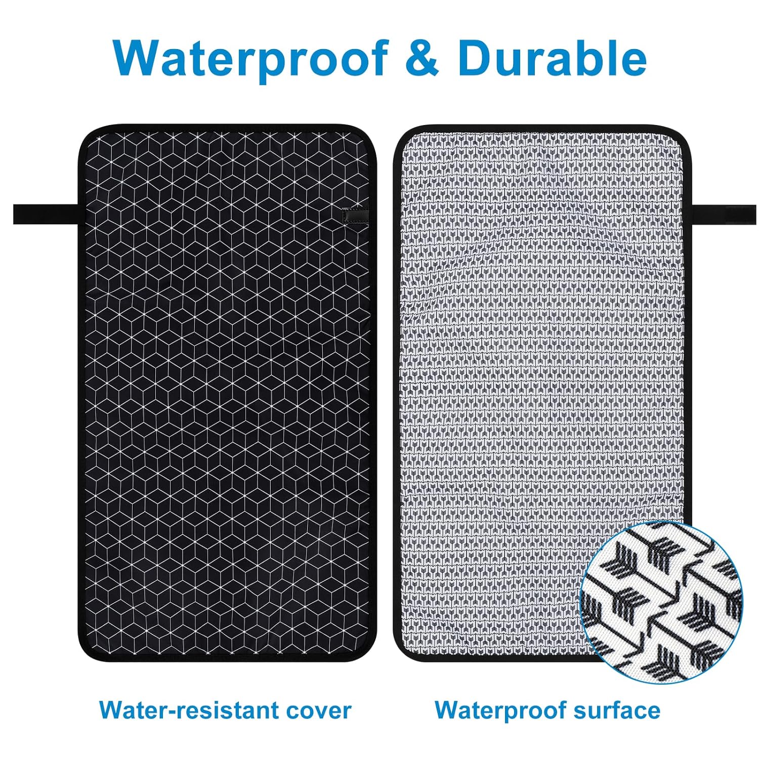 - Fully Waterproof: Our baby changing mat waterproof both inside and outside. You don't have to worry about extra penetration. And it can be quickly clean with a wet wipe.
