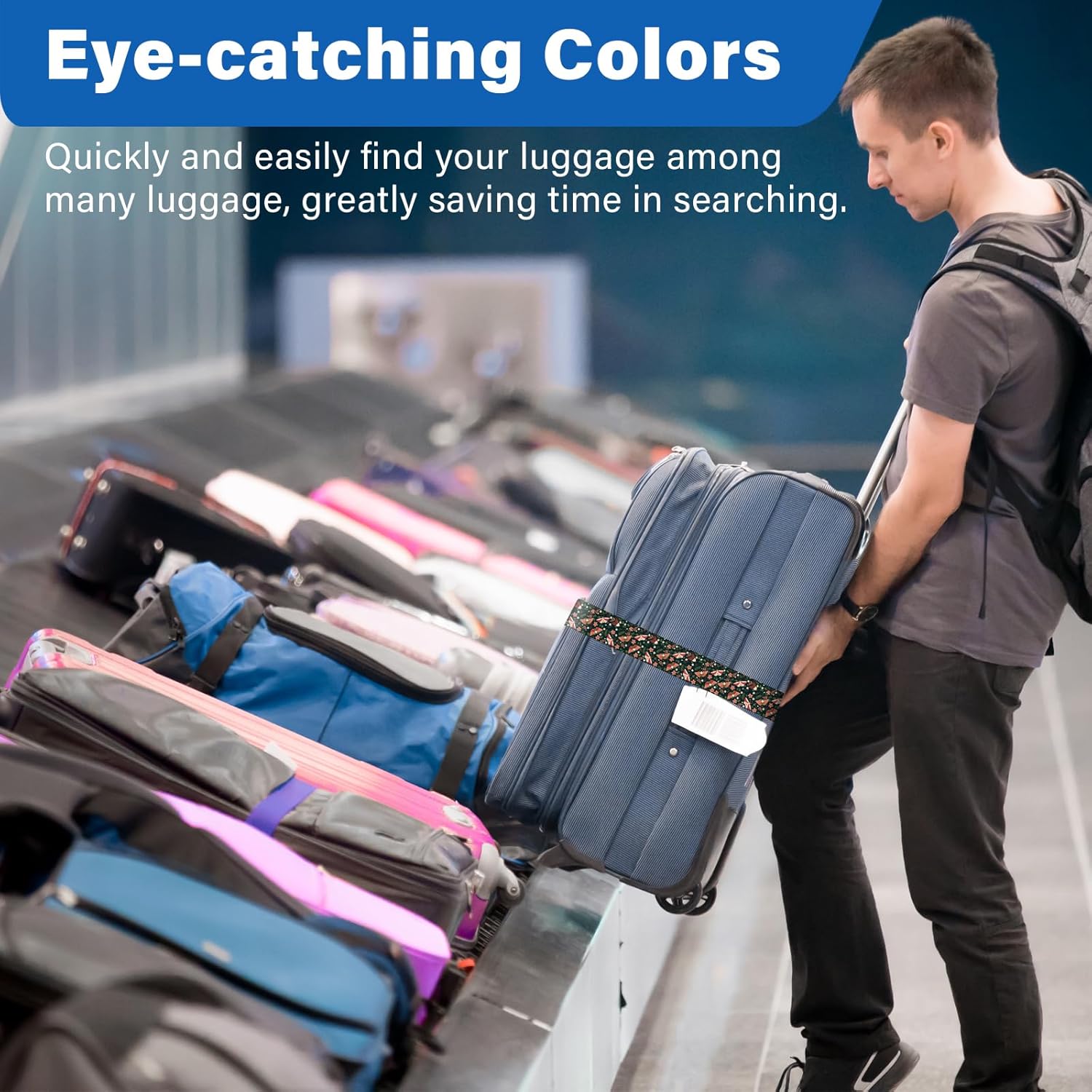 - [THOUGHTFUL DESIGN]: Doouble Lock+Adjustable+Portable+Lightweight+Sturdy Buckle.The adjustable luggage strap is equipped with a buckle that has a double lock. You need to slide up and down to unlock and open it, and then press the release buckle to quickly release and open it, ensuring the safety of your luggage. It is very convenient and practical!The luggage strap is lightweight, very portable, and very convenient to use