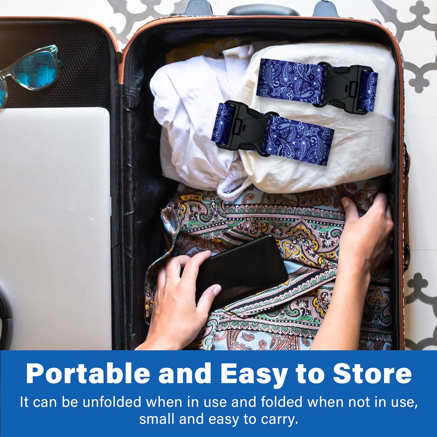 - [PRODUCT INCLUDE]: 2 Luggage Straps+Belt Length: 40"-74"+Belt Width: 2".2 pieces luggage straps meet your usage needs, and the adjustable luggage strap size is suitable for most suitcases, luggage bags, backpacks, etc. The width of 2 inch can better protect your luggage