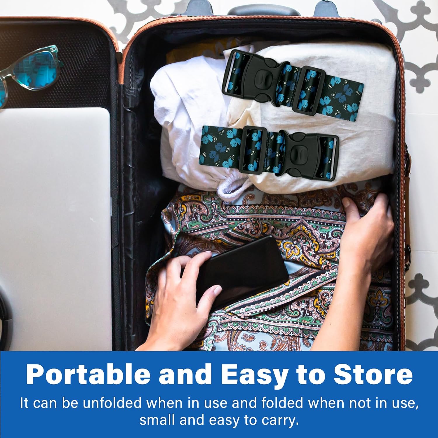 - [PRODUCT INCLUDE]: 2 Luggage Straps+Belt Length: 40"-74"+Belt Width: 2".2 pieces luggage straps meet your usage needs, and the adjustable luggage strap size is suitable for most suitcases, luggage bags, backpacks, etc. The width of 2 inch can better protect your luggage