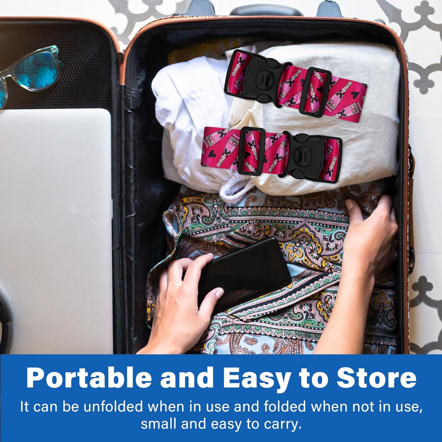 2 Pack Luggage Straps for Suitcases, Adjustable Travel Belt with Double Lock and Quick Release Buckle, Heavy Duty Nylon Bag Packing Strap, Bright Identifiers Business Travel Accessories-Pink Bottles