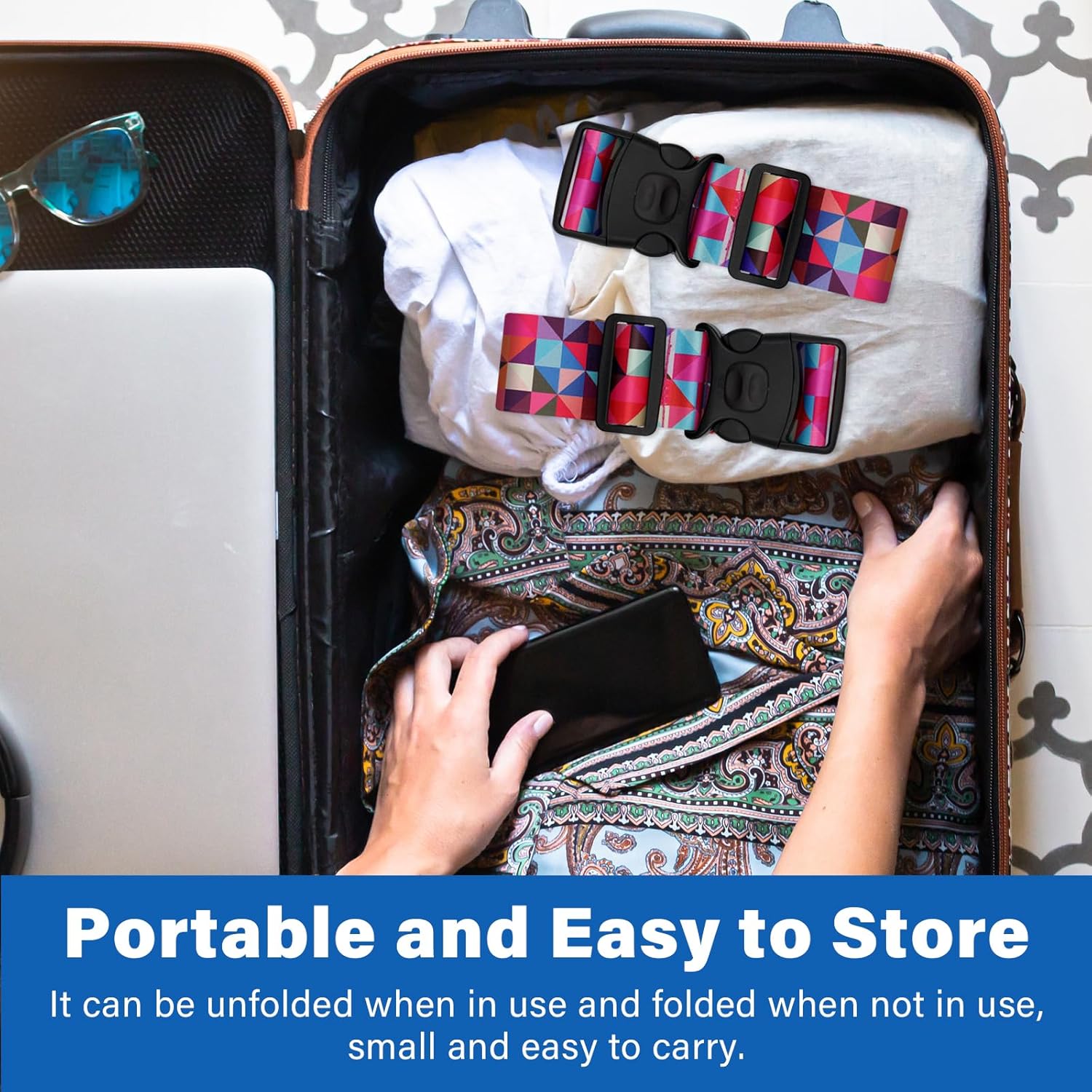 2 Pack Luggage Straps for Suitcases, Adjustable Travel Belt with Double Lock and Quick Release Buckle, Heavy Duty Nylon Bag Packing Strap, Bright Identifiers Business Travel Accessories-Colorful Block