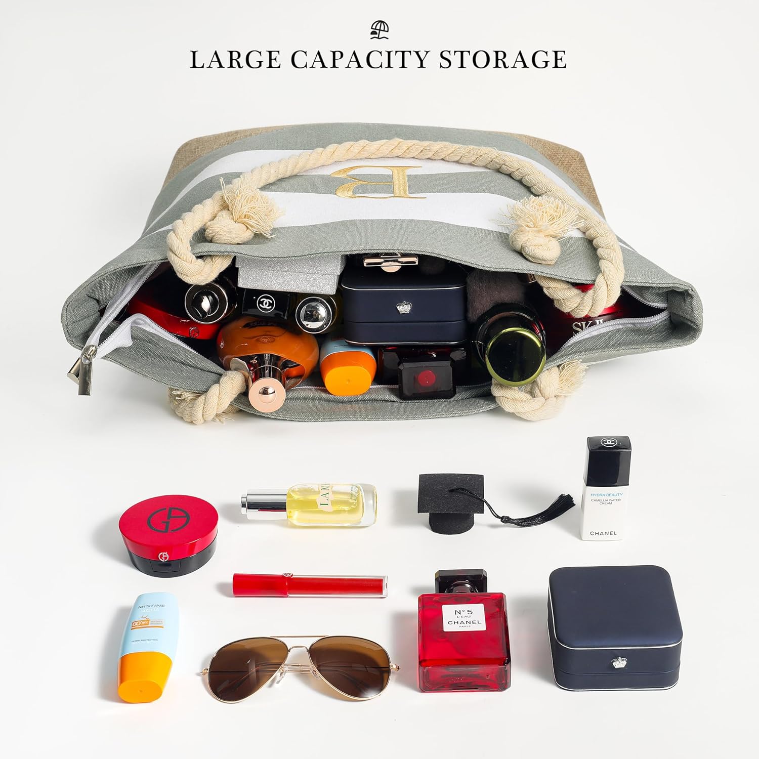 YOOLIFE Initial Canvas Waterproof Beach Tote Bag Zipper Personalized Gifts for Women Her Birthday Travel Beach Essential