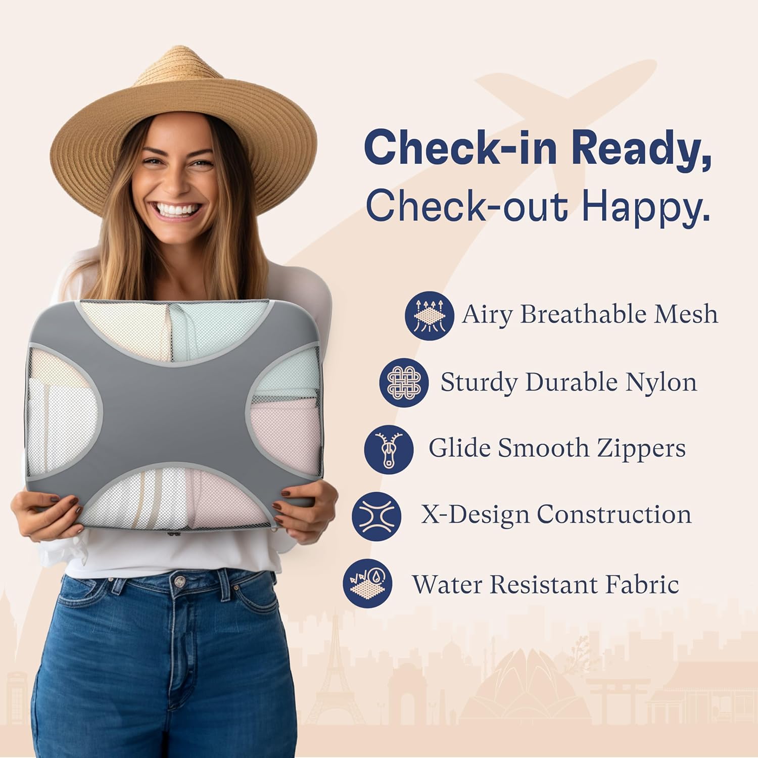Shacke Premium 5 Packing Cubes Set - Lightweight Mesh Travel Luggage Organizers with Laundry Bag, 5-Piece Suitcase Storage System (Charcoal Gray)