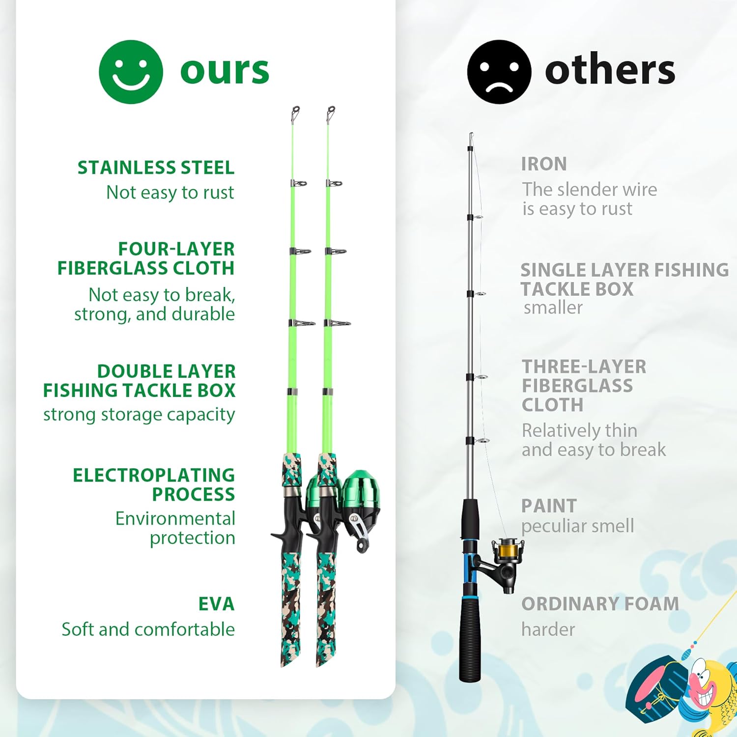 - HIGH-QUALITY: With four-layer fiberglass cloth, The toddler fishing pole has good toughness, is not easy to rust and break. It is safe for children. Guide eyes made of stainless steel instead of iron wire are harder and more durable