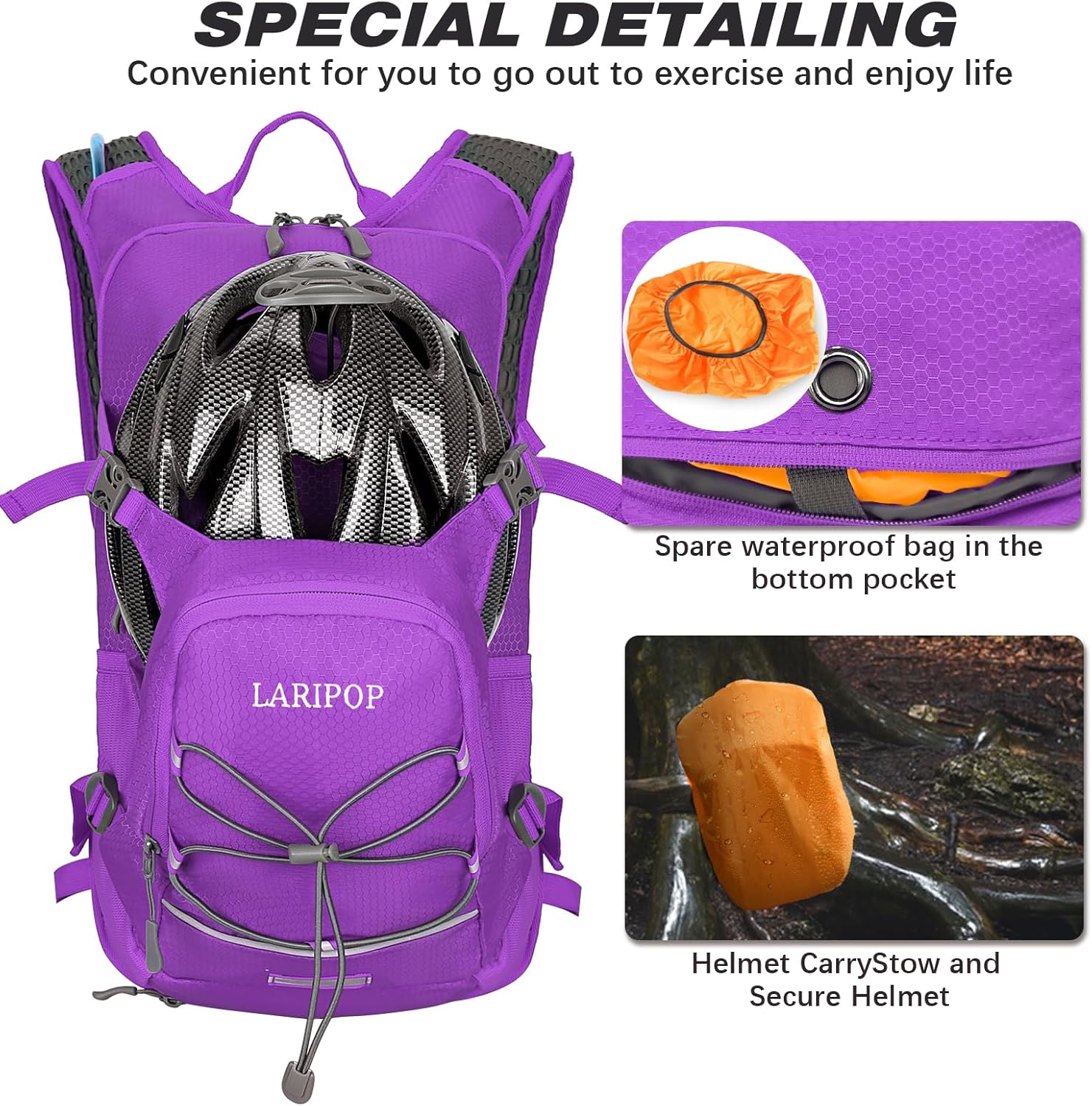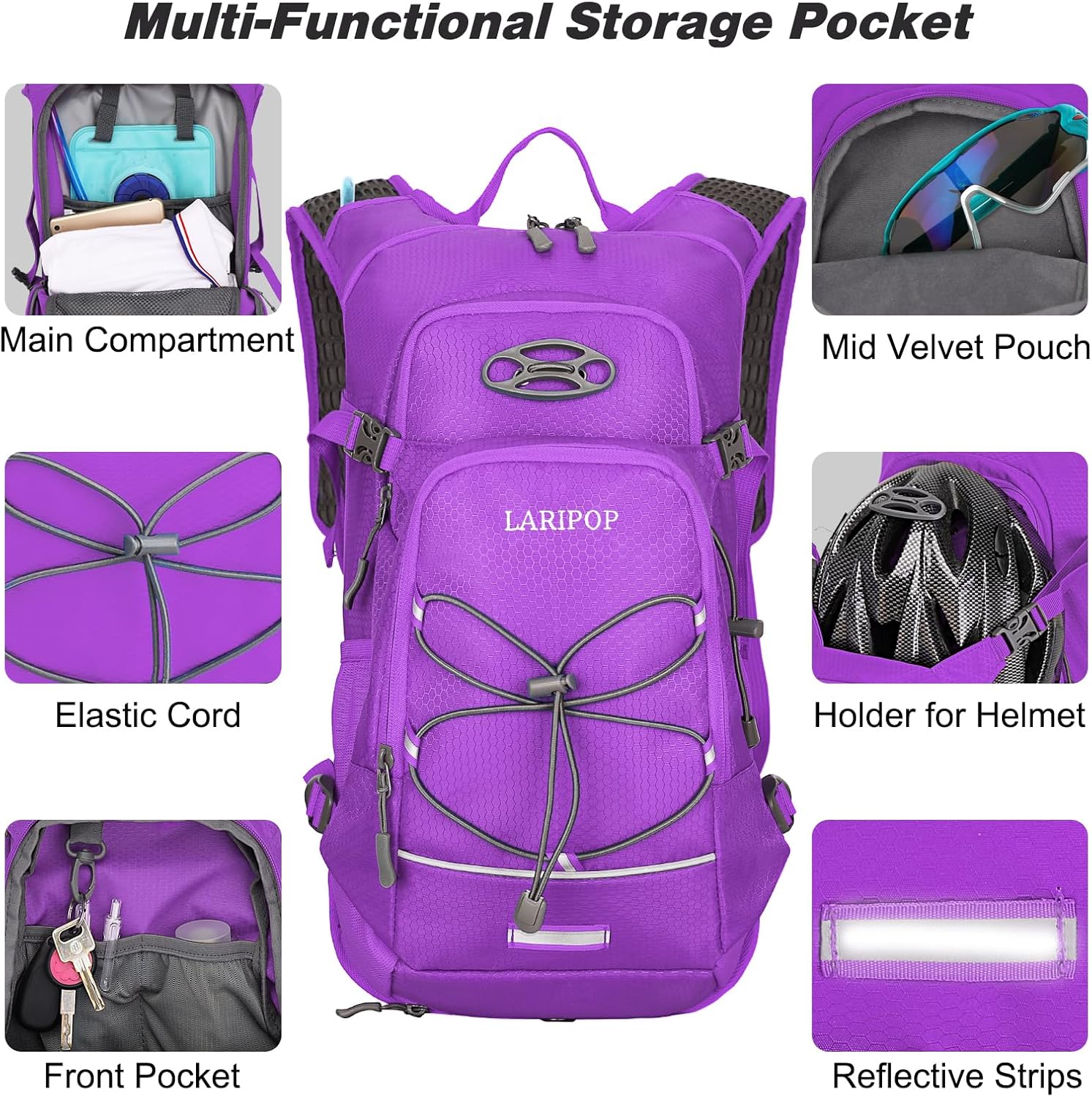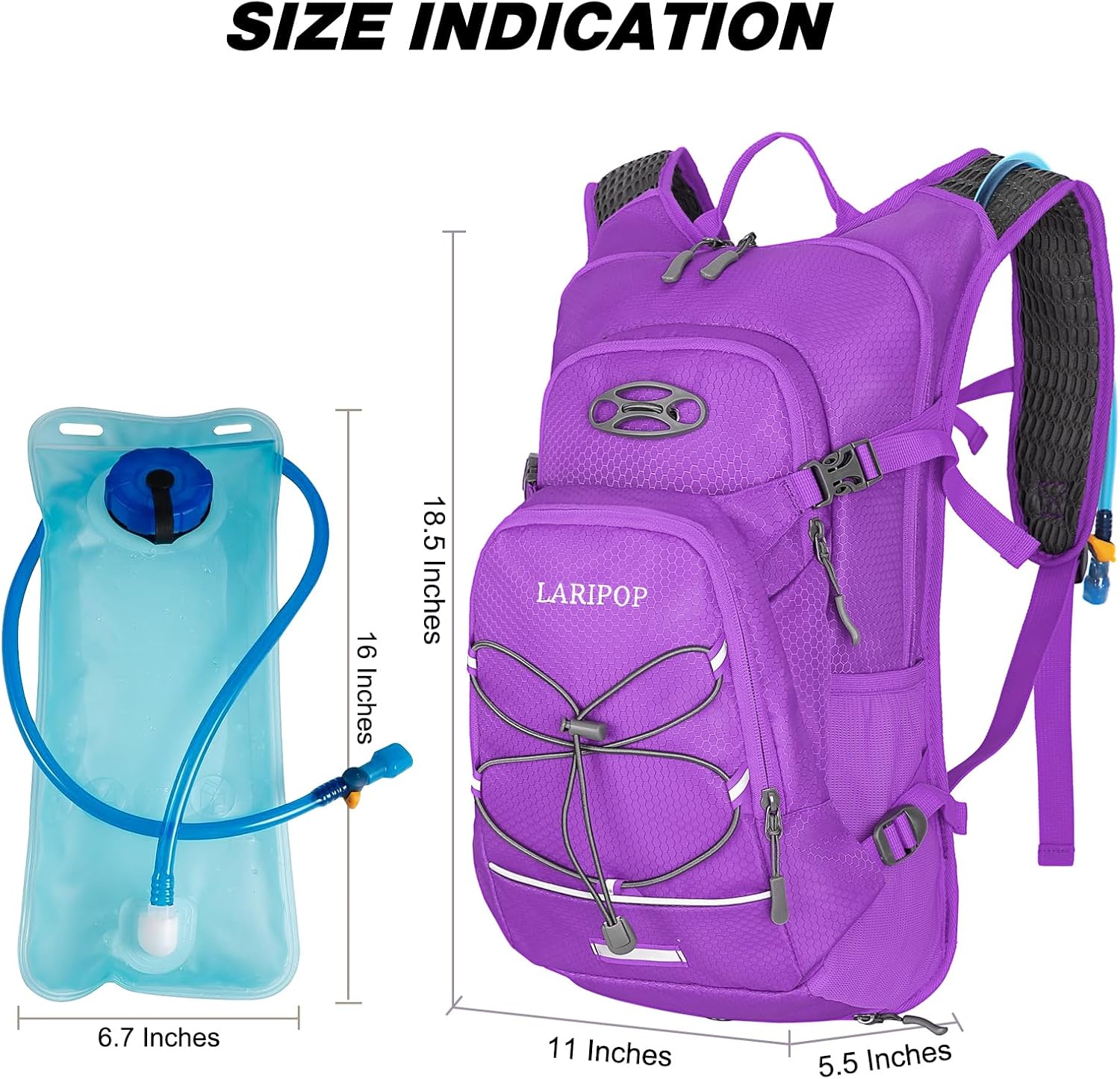 LARIPOP Hydration Backpack, 18L Hiking Backpack with 2L Water Bladder, Lightweight Water Pack for Cycling, Hiking, Biking