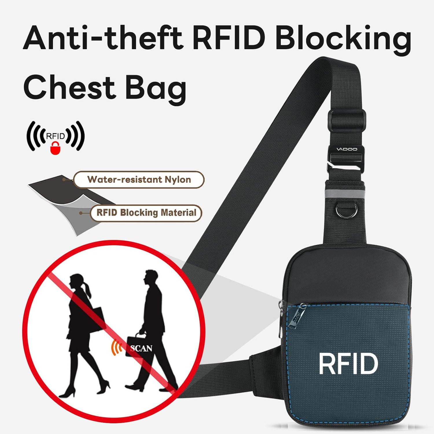 VADOO Mini Sling Bag, Small Crossbody Bag with RFID Blocking for Women and Men, Lightweight Chest Phone Bag for Travel Casual