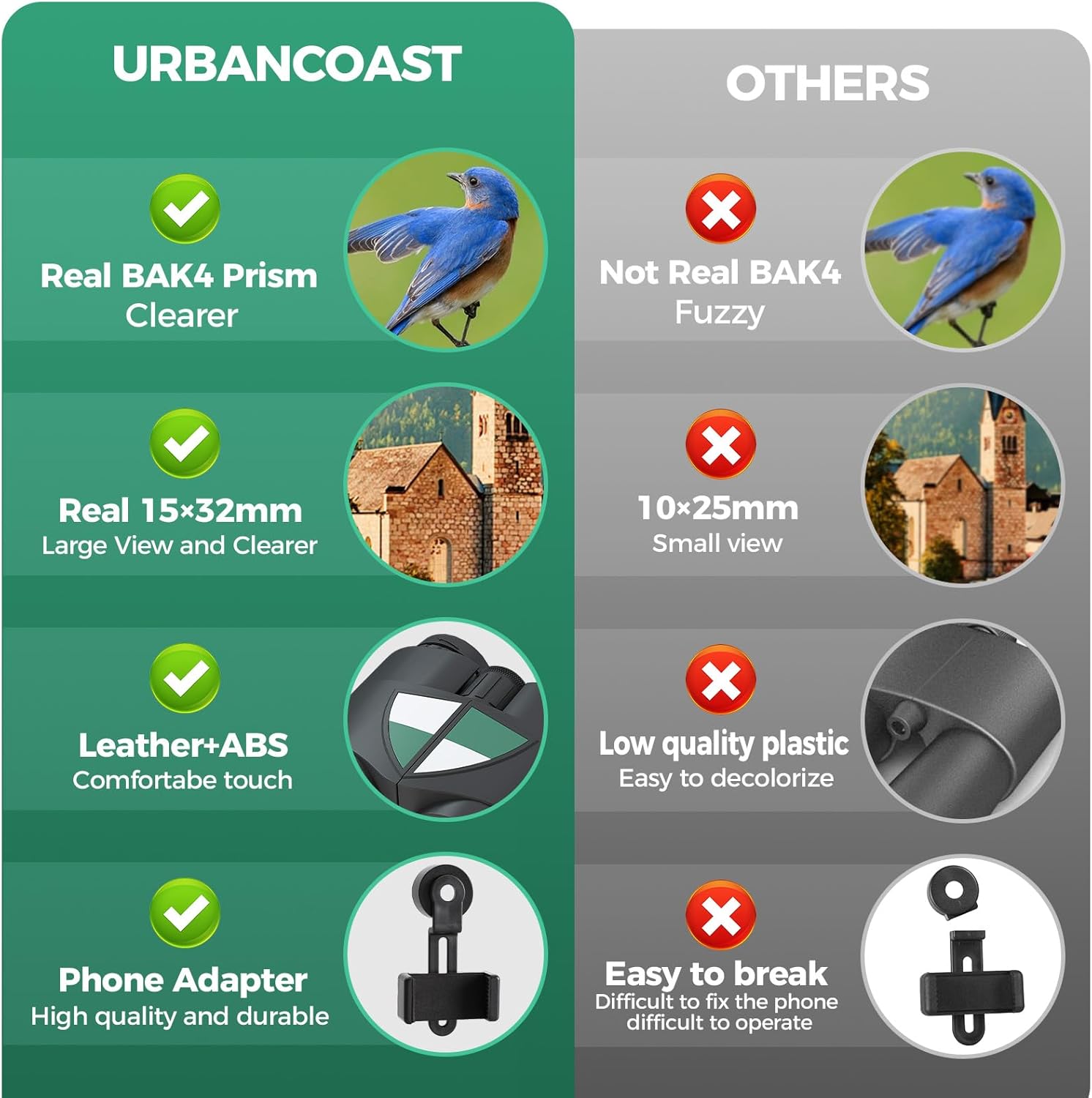 15x32 Compact Binoculars for Adults and Kids, High Power Lightweight Small Binoculars with Phone Adapter for Concert Cruise Ship Hiking Bird Watching Travel Safari Viewing Football Sports