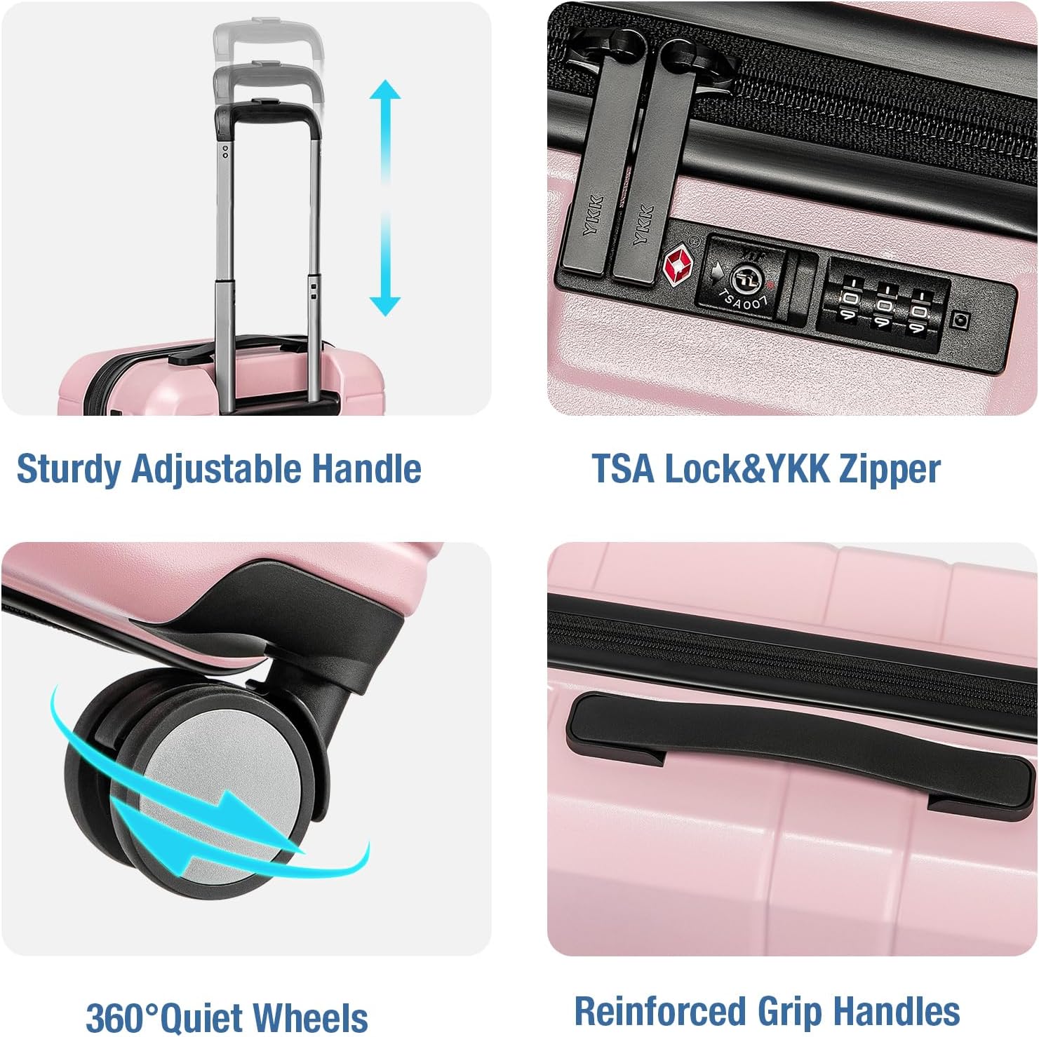 KYME Carry On Luggage 22x14x9 Airline Approved with TSA Lock Hard Shell Carry On Suitcase Lightweight Suitcases with Wheels Small Luggage for Men Women,Carry-On 20 Inch,Pink