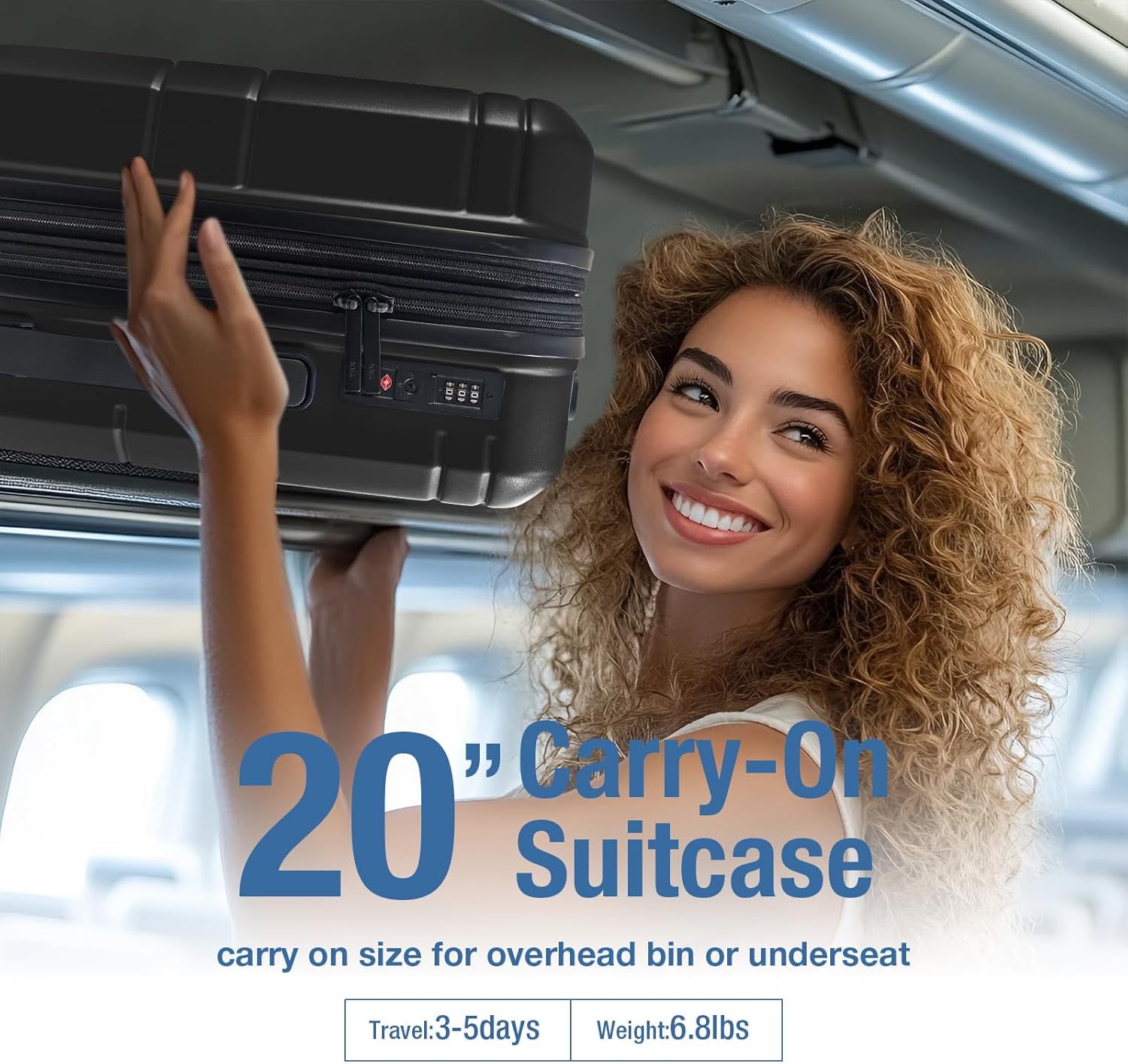- EXPANDABLE CARRY-ON:Dimensions about 21.65" x 8.66"x 14.56" including wheels and handle,equiped with about 2 inch expandable zipper,which makes you can get extra 20% storage space.KYME 20 inch carry on luggage with TSA lock fits the overhead bins of most major US airlines including American,Delta,Southwest,Spirit and Frontier.durable carryon suitcases with spinner wheels are perfect for 1-4 day trips