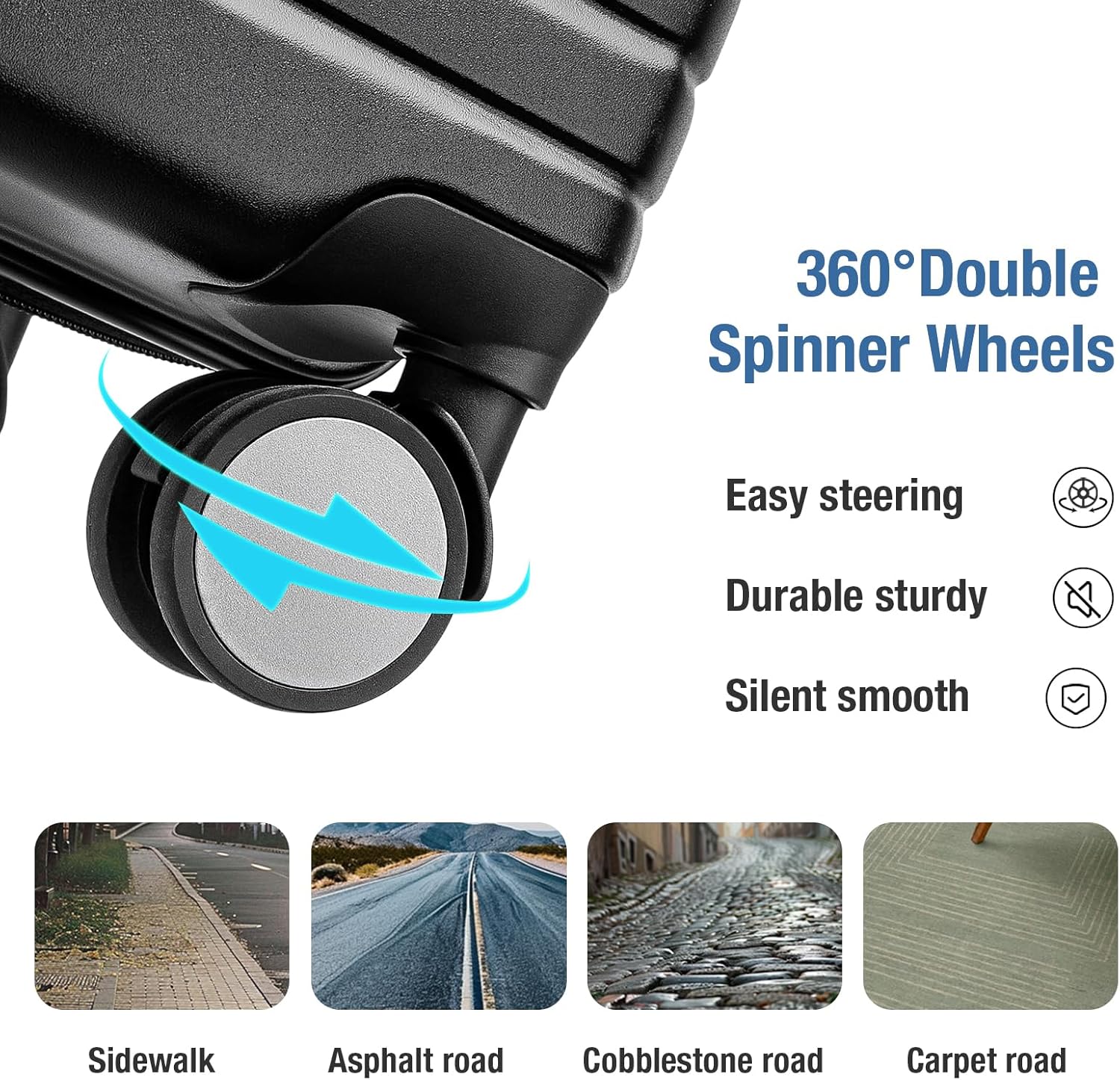 - SPINNER WHEELS LUGGAGE:KYME carry on luggage equiped with double 360°swivel wheels,rolling smoothly over a variety of surfaces.these 20 in small rolling suitcase equiped with a 3-step handle adjustment for different heights.Combination TSA lock and YKK zipper keeps your peace of mind
