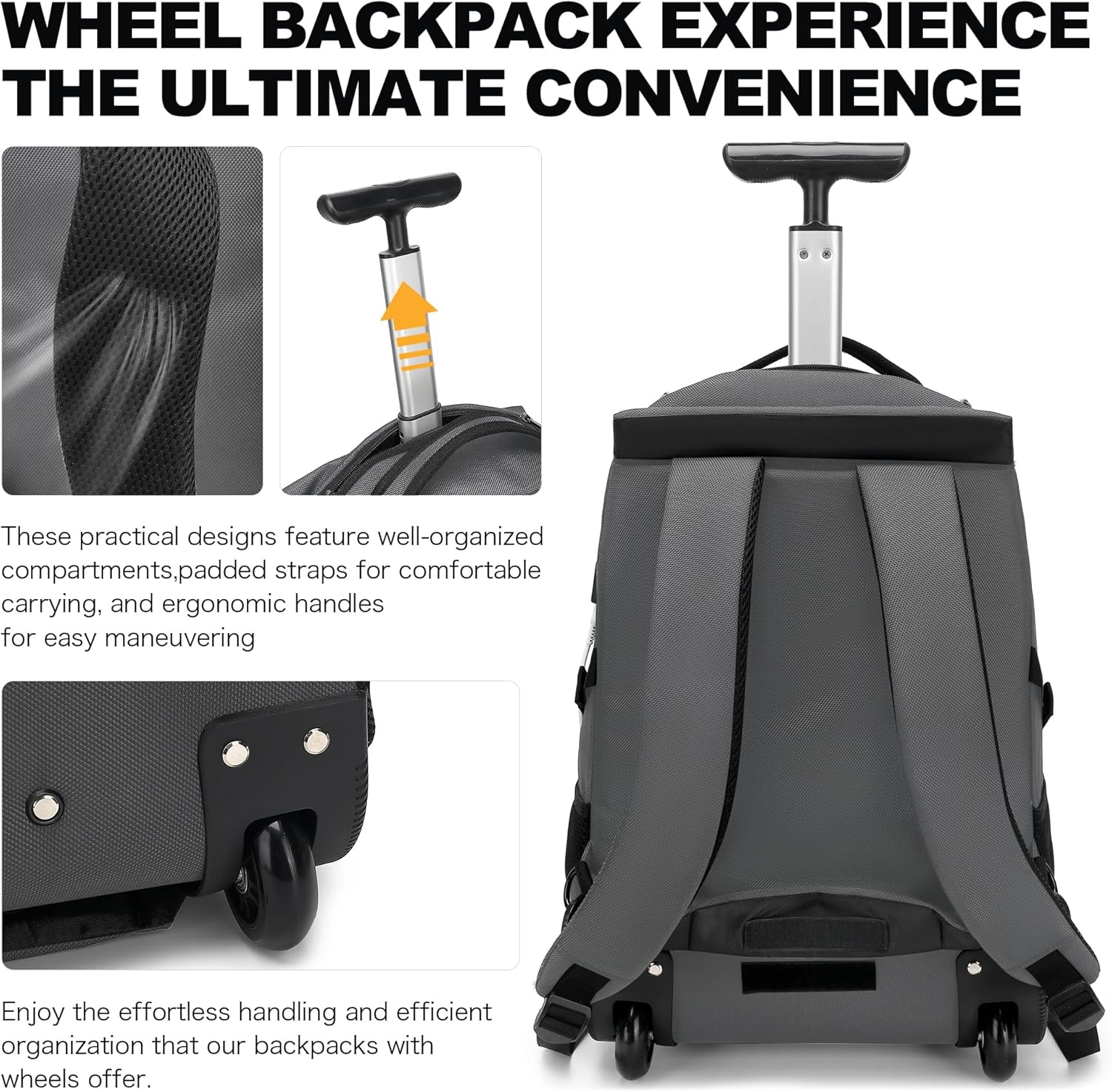 - TRAVEL COMPANION: This backpack with wheels is convenient for security checks, it is designed to meet most airline carry-on baggage requirements and fits easily into the overhead rack. Its multi-purpose design provides convenience for student parties and business travelers, this classic multi-functional backpack is the best choice for students and travelers for roller backpacks, college student backpacks with wheels, and business rolling backpacks