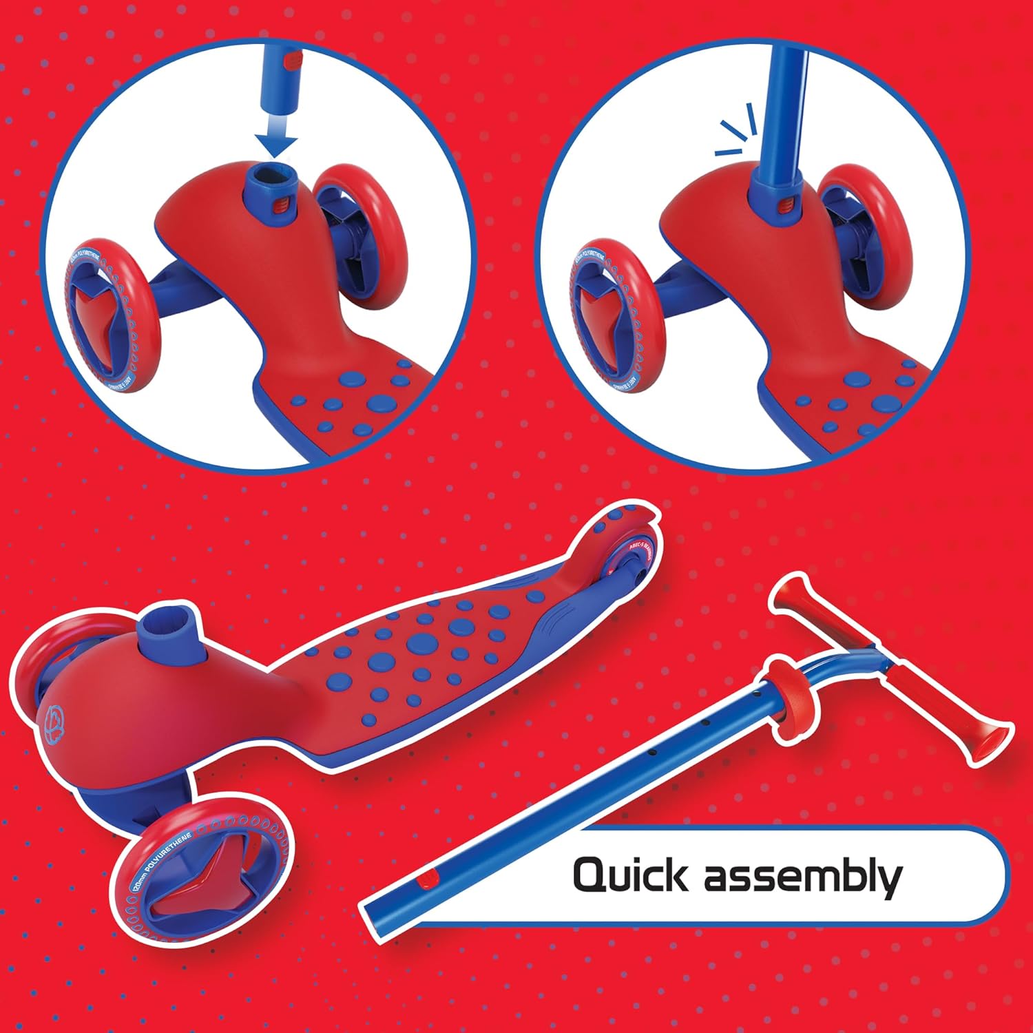 - ONE Click ASSEMBLY-This kick scooter for toddler features a one-button removable T-bar. Just insert T-bar into the base, and it is ready to go. Adult supervision while riding is recommended.