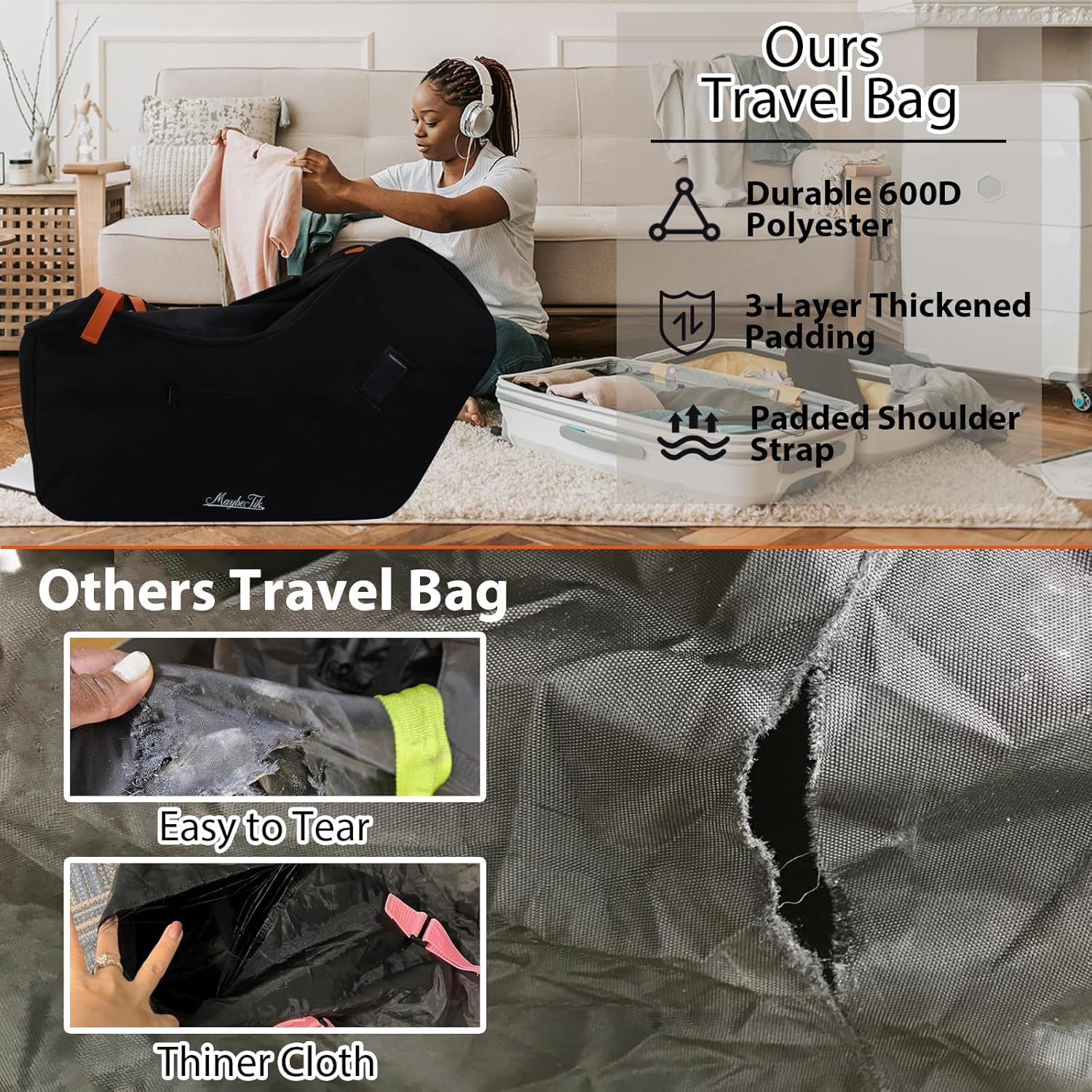 - 【Premium Car Seat Travel Bag for Airplane】 MaybeTik Car Seat Travel Bag is crafted from high-quality waterproof polyester, our car seat travel bag offers superior durability and shields your car seat from moisture, dirt, and damage during transit