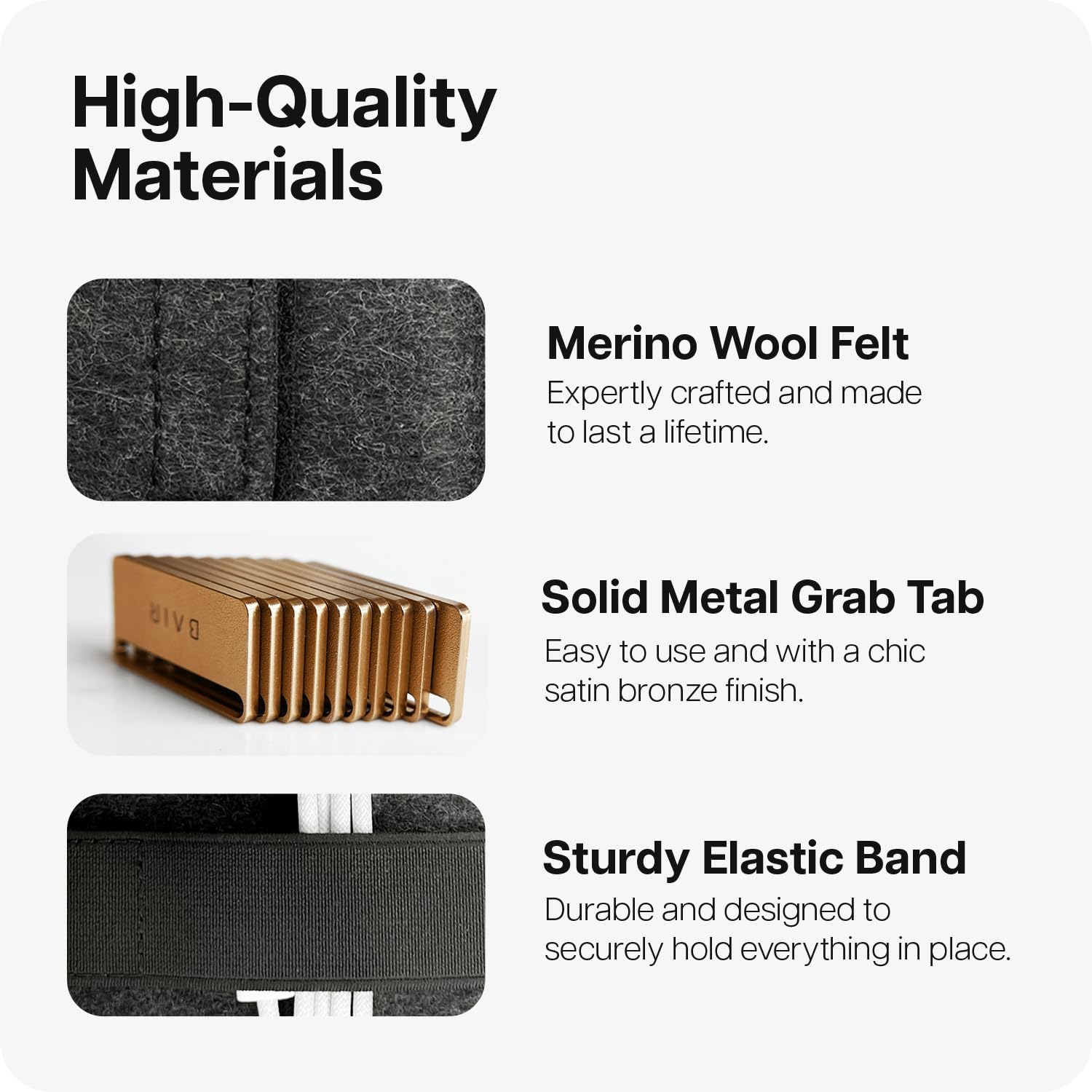 - Well Built - Crafted of premium grade custom Merino wool felt to last a lifetime. Features a solid machined metal grab tab to instantly identify the cord release end of the elastic retention band. The highest grade double-sided twill elastic for long lasting durability