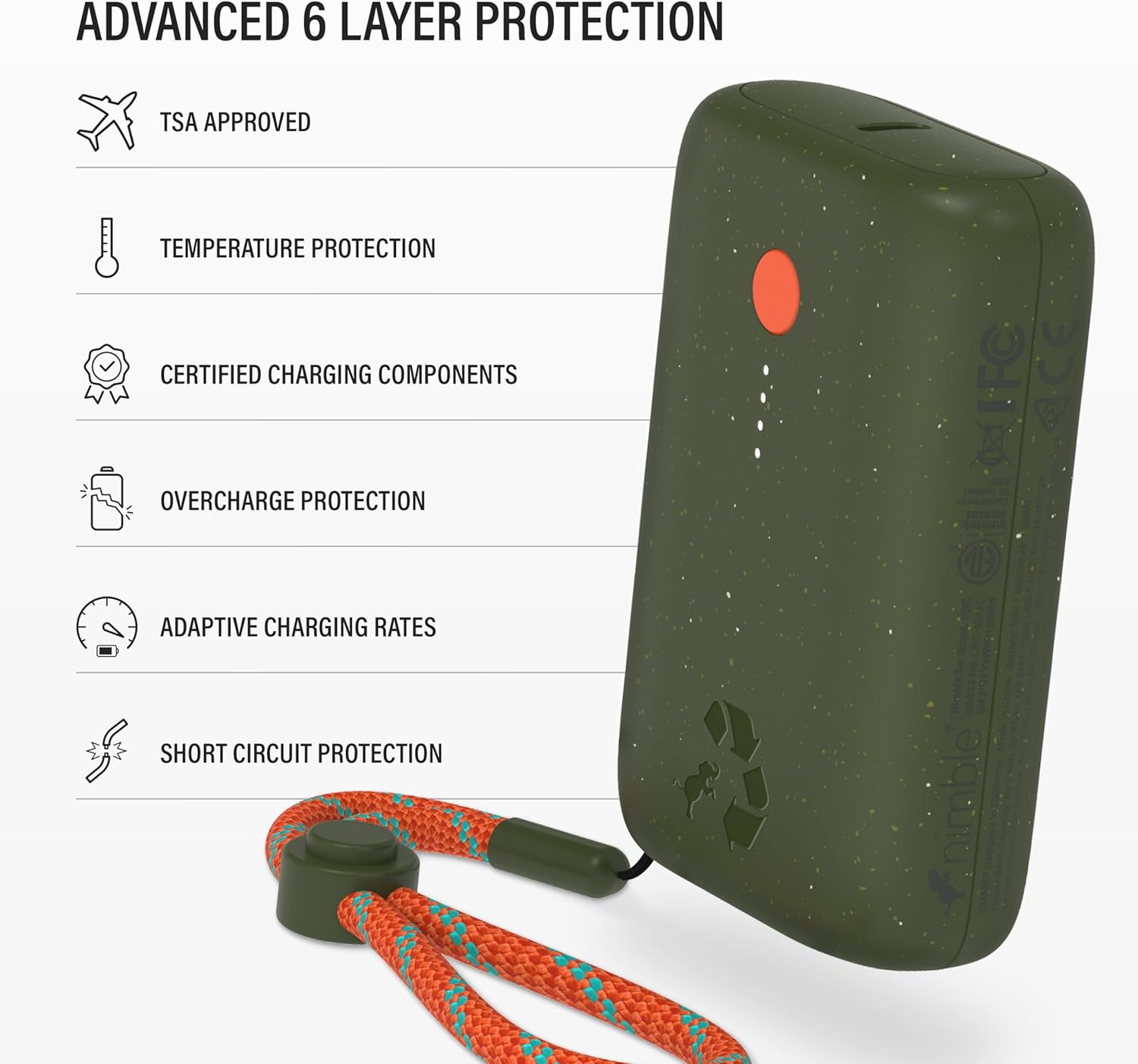 - Portable Charger Power Bank: This slim portable phone charger charges any smartphone from 0 to 50% in under 30 minutes without overheating. It’s TSA compliant and comes with an adjustable lanyard, making it super easy to carry—perfect for travel.