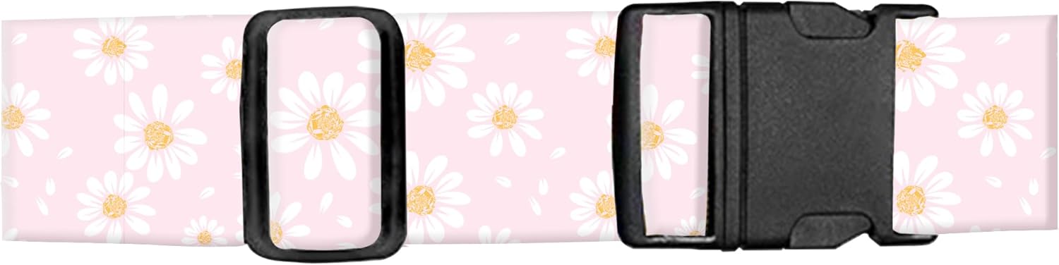Luggage Straps for Suitcases, Adjustable Travel Belt, Durable Wide Luggage Strap, Cute Suitcase Strap Identifiers with Buckle, Bag Straps for Luggage, Cute Pink Daisy