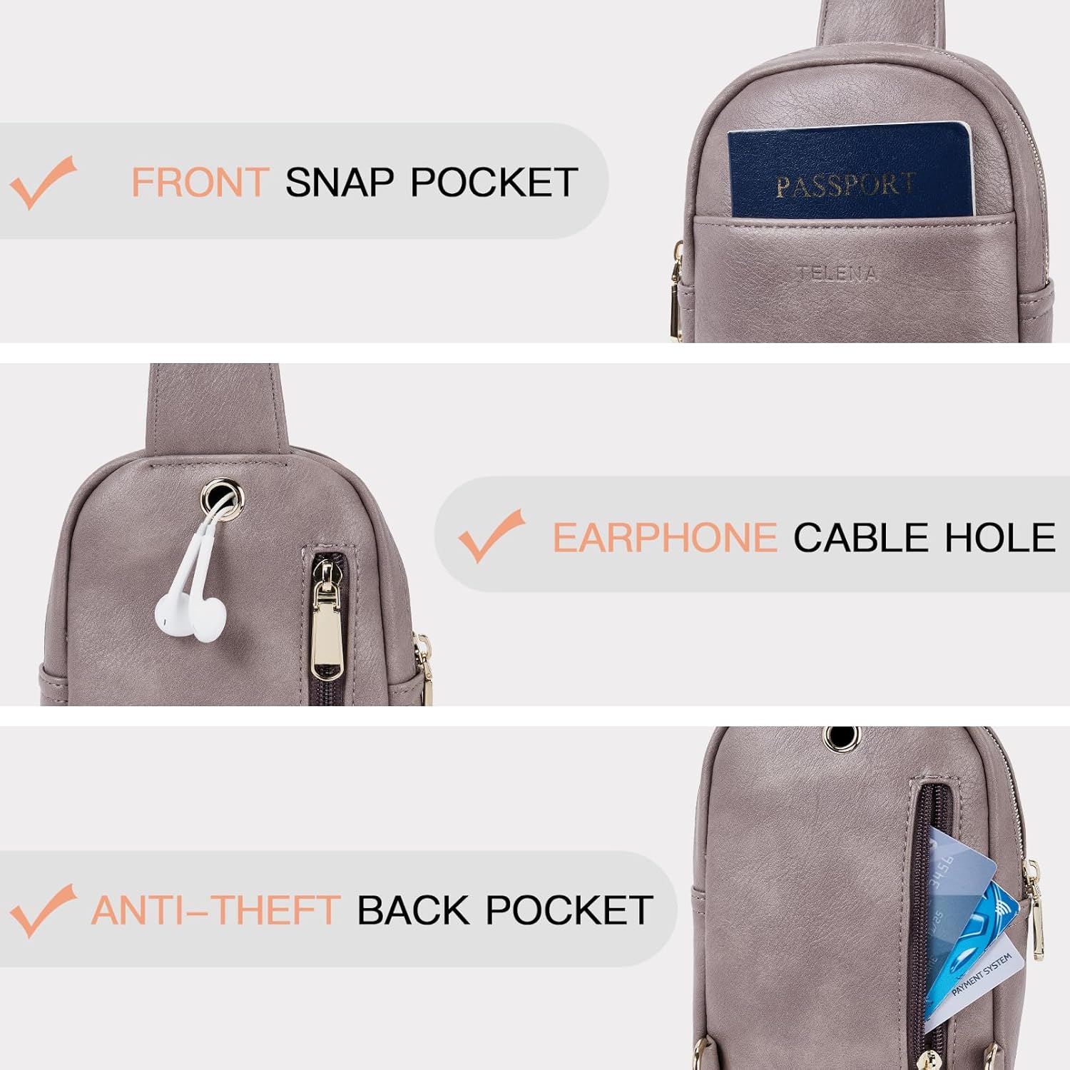 Telena Small Sling Bag for Women Leather Crossbody Fanny Packs Chest Bag for Women