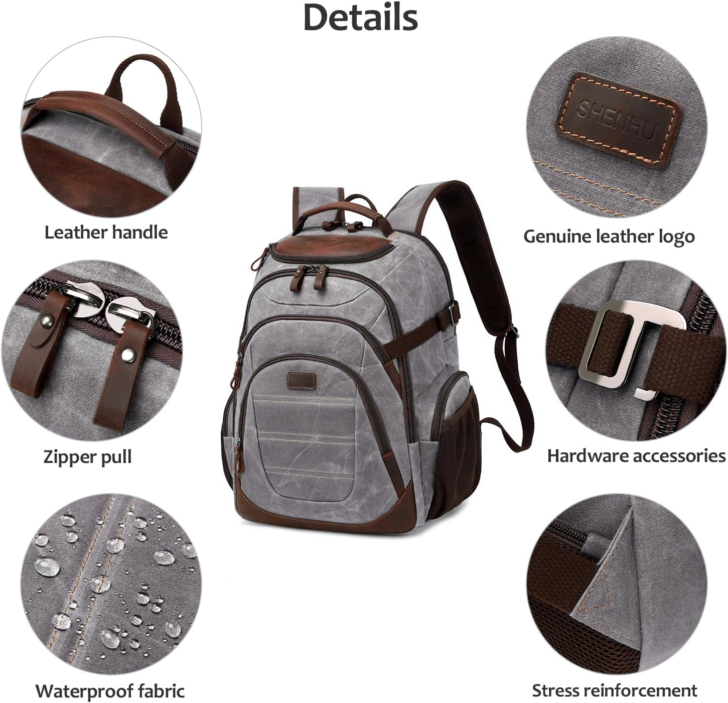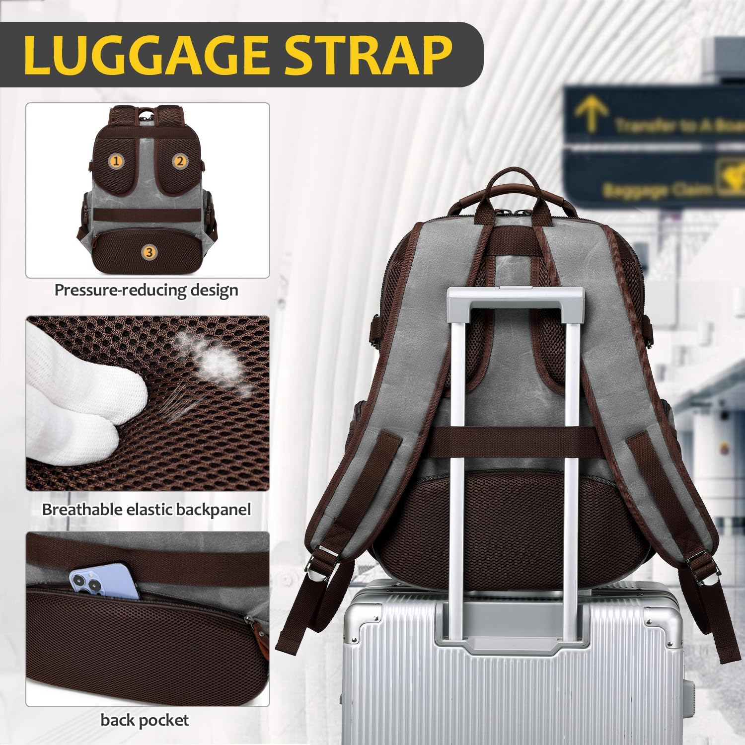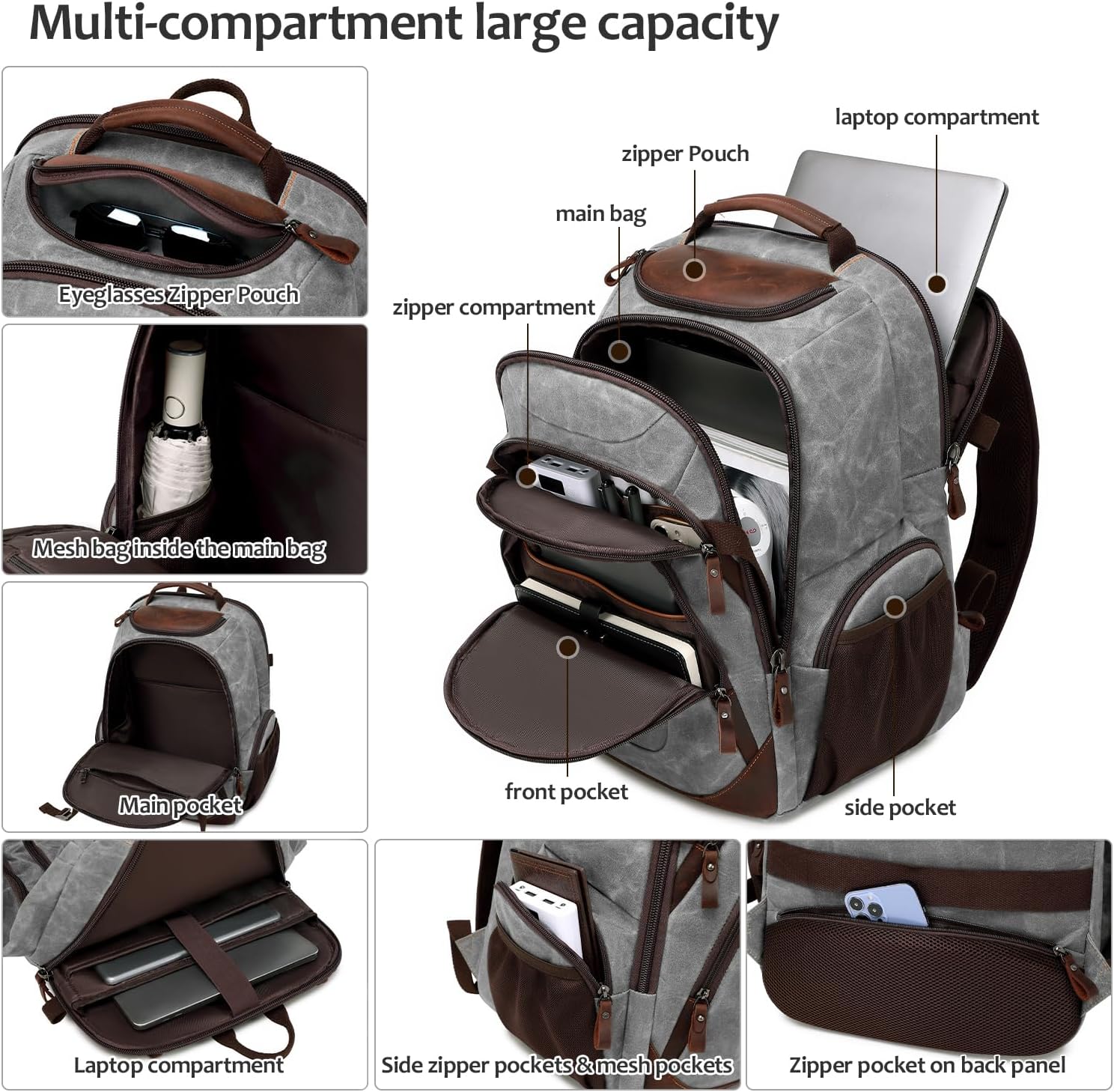 Travel Laptop Backpack 17.3 inch XL Computer Backpack for Men Waxed Canvas College Daypack Business Backpack Gray
