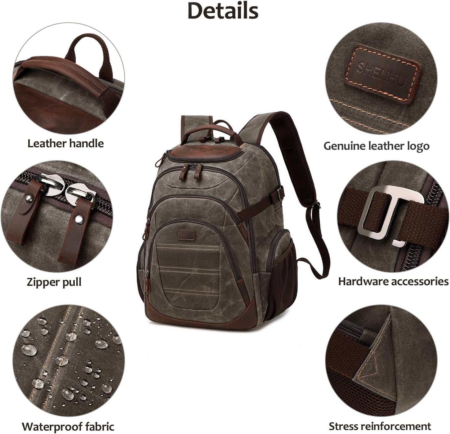 - 【Quality Material】: This stylish laptop backpack is made of waxed canvas and leather material; Dimensions: 18.5"x13.4"x9", fits up to 17.3" laptop; Weight:2.95lb.