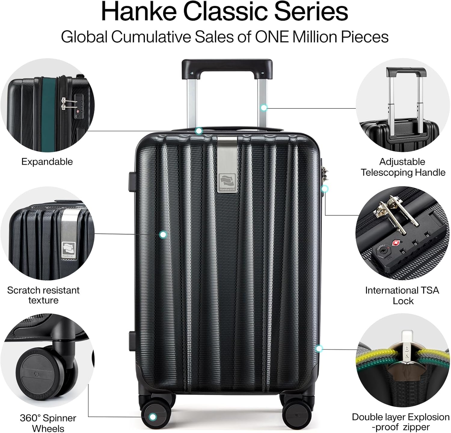 Hanke 29 Inch Expandable Checked Luggage Lightweight PC Hard Shell Luggage Suitcases with Wheels Travel Luggage Rolling Large Suitcase Travel Luggage Bag for Study Abroad.(Jet Black)