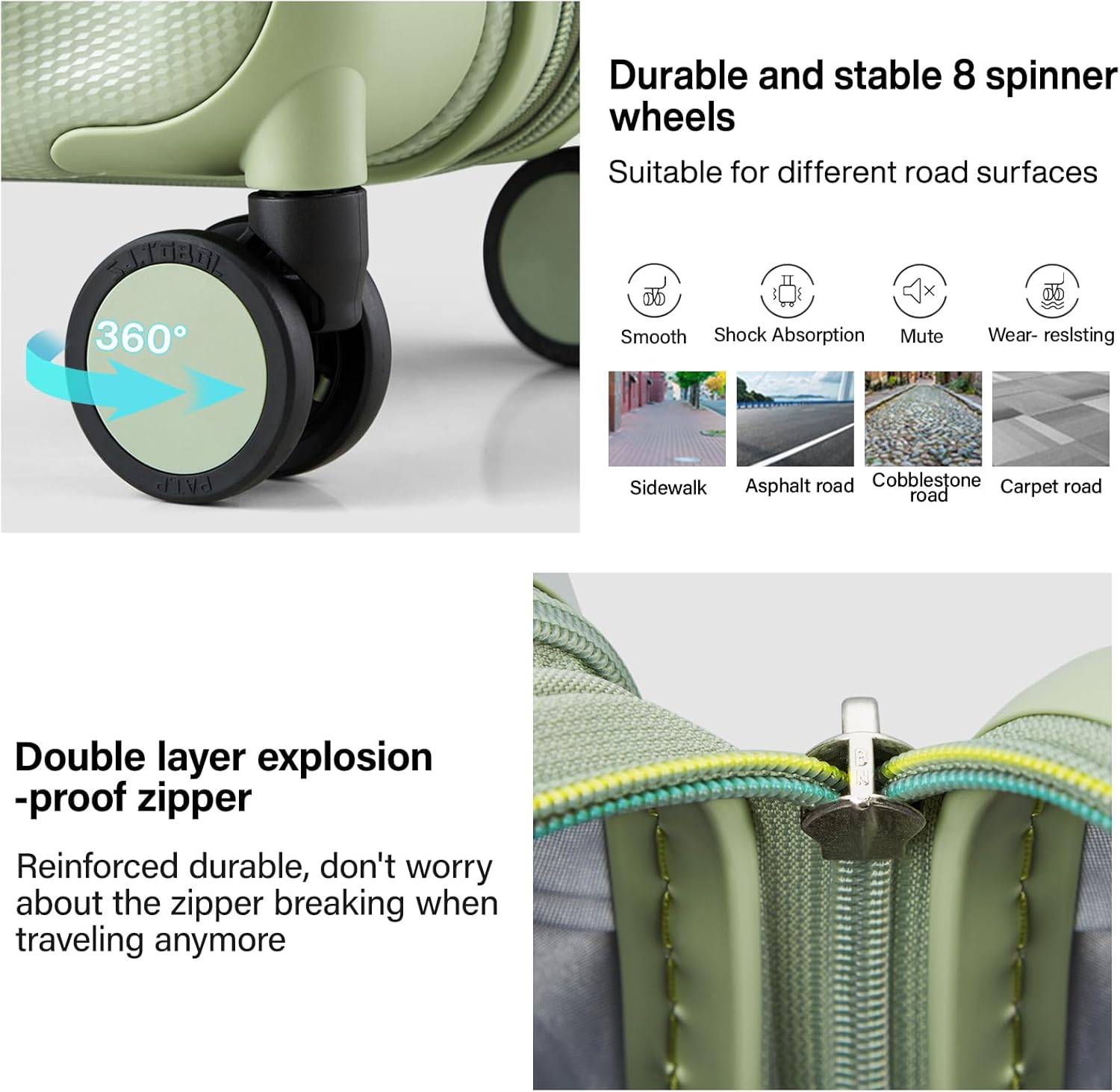 - 【High Quality Accessories】SJ . TOBOL durable spinner wheels,It is composed of precision shaft center and thickened TPE wheel skin, which is very wear-resistant,quieter and has strong bearing capacity, It is applicable to different roads such as cobblestone road and carpet road. Smooth and durable 5-strand reinforced explosion-proof zipper reverse coil prevents burst zipper. Travel approved combination lock is safe and convenient. Ergonomics telescopic handle with multi-steps adjustment.