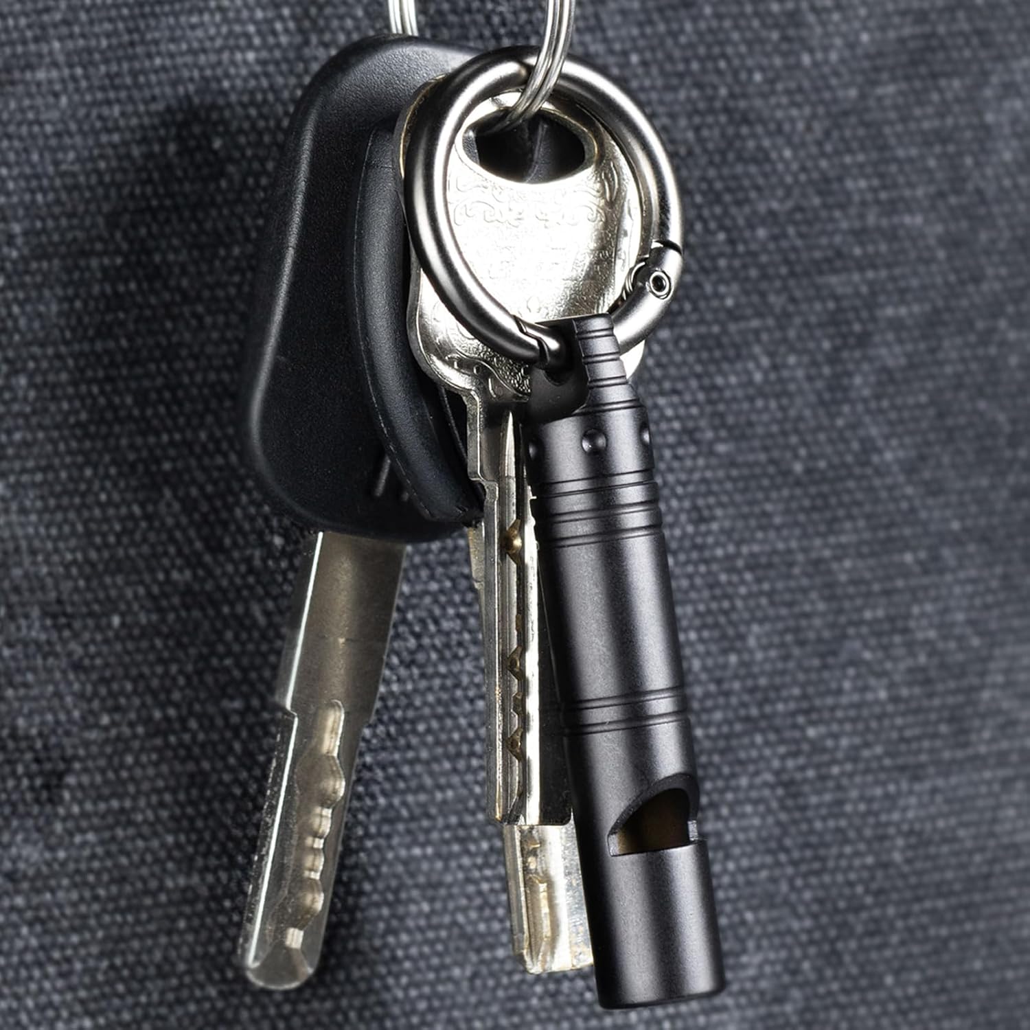 - Useful Whistle:This whistle suit for women,men and kids.You will get 1 x Black Titanium Whistle,1 x Round Keychain