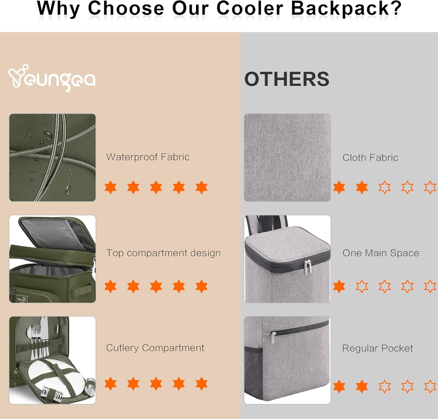 - Ultimate Temperature Control: Experience unmatched heat retention with our Youngoa cooler backpack, engineered to maintain the chill for up to 12 hours. The secret lies in its 8mm thick premium foam insulation and a state-of-the-art silver PEVA lining, ensuring your beverages and food stay perfectly cool for beach trips, picnics, hikes, camping adventures, or even grocery runs