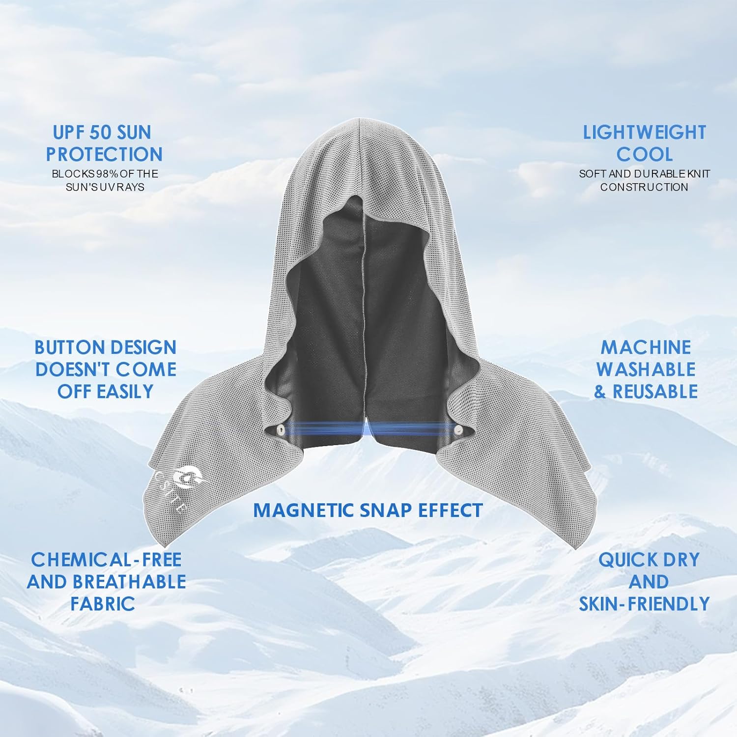 - QUALITY MATERIAL: Cooling hoodie towel is made of high-quality microfibers with a mesh pattern, is breathable, UV protection, lightweight soft, durable and easy to fold; Not only skin-friendly for the neck and face or other body areas, it's also chemical-free and safety for all users; The special structural design allows it to maintain cooling and dissipate heat in summer