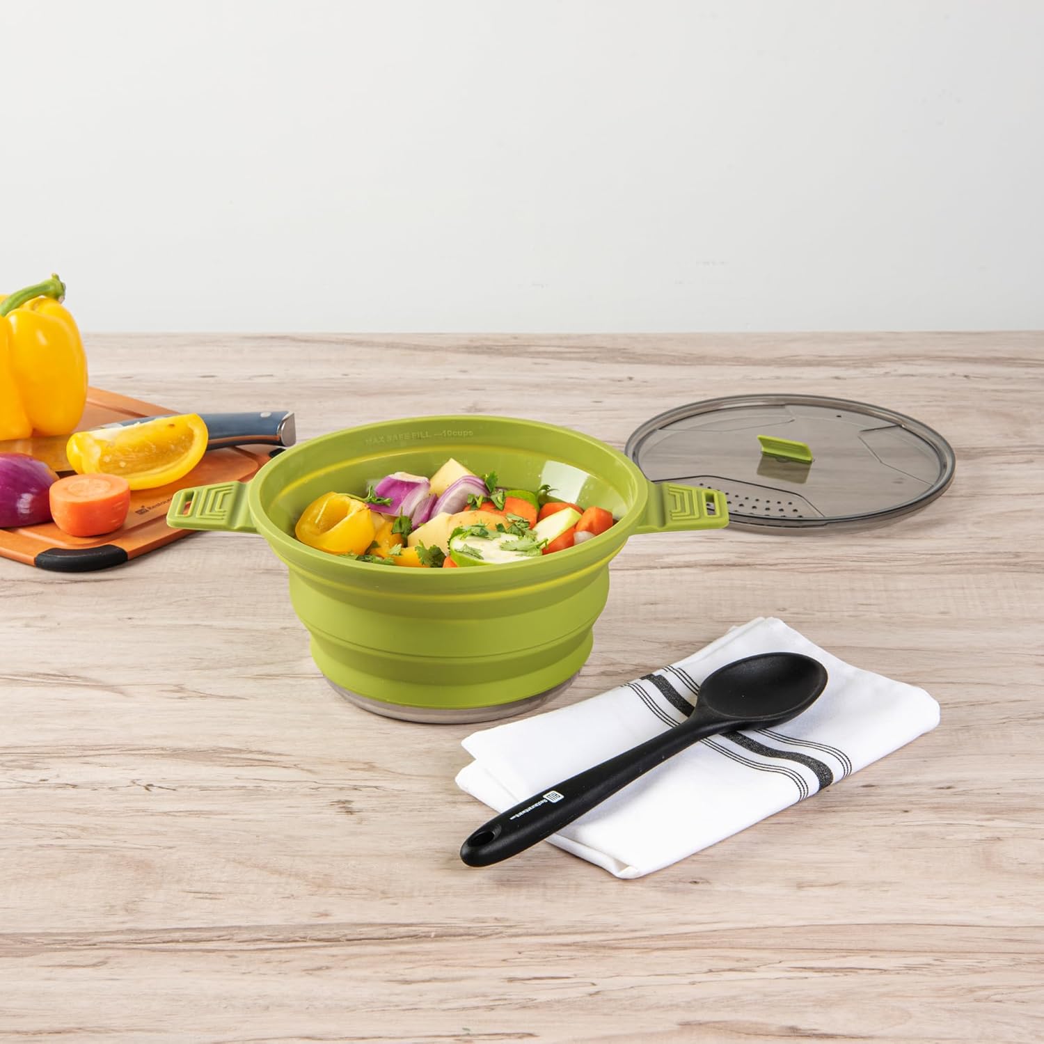 - PORTABLE & VERSATILE: This collapsible silicone pot is a game changer! Compact and lightweight, this pot is perfect for camping, hiking, or traveling. Your new favorite travel companion.