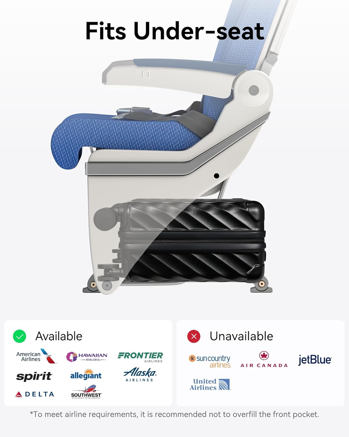 - Airline-Approved: This underseat carry on luggage with wheels fits perfectly under most airline seats, allowing you to skip the hassle of checking luggage. It’s your go-to travel companion for quick, stress-free boarding.