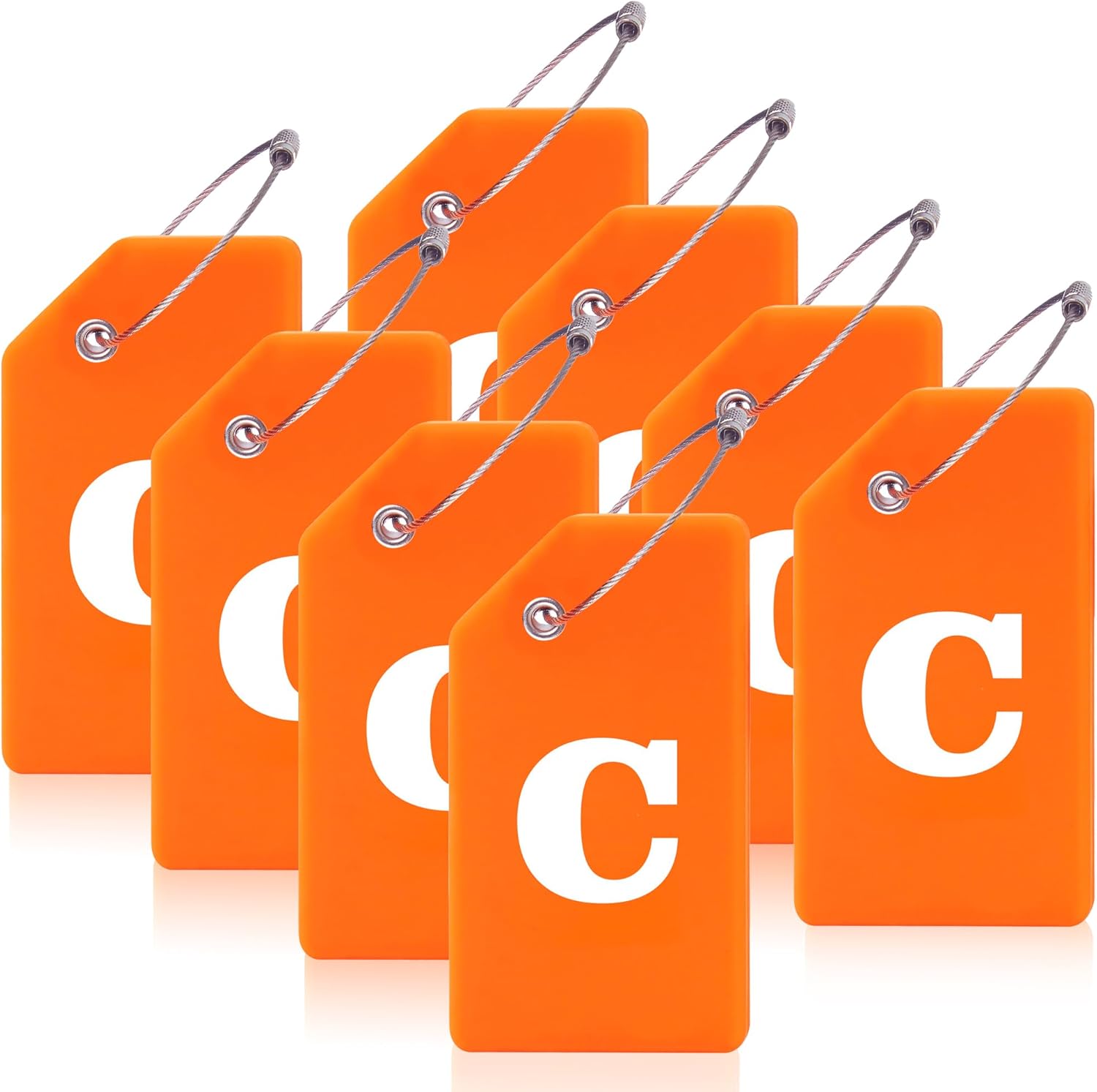 8 Pcs Luggage Tags for Suitcases, 26 Initial Letter Travel Luggage Baggage Identification Labels ID Tags Fully Bendable Tags with Stainless Steel Loop (Letter C, Orange)