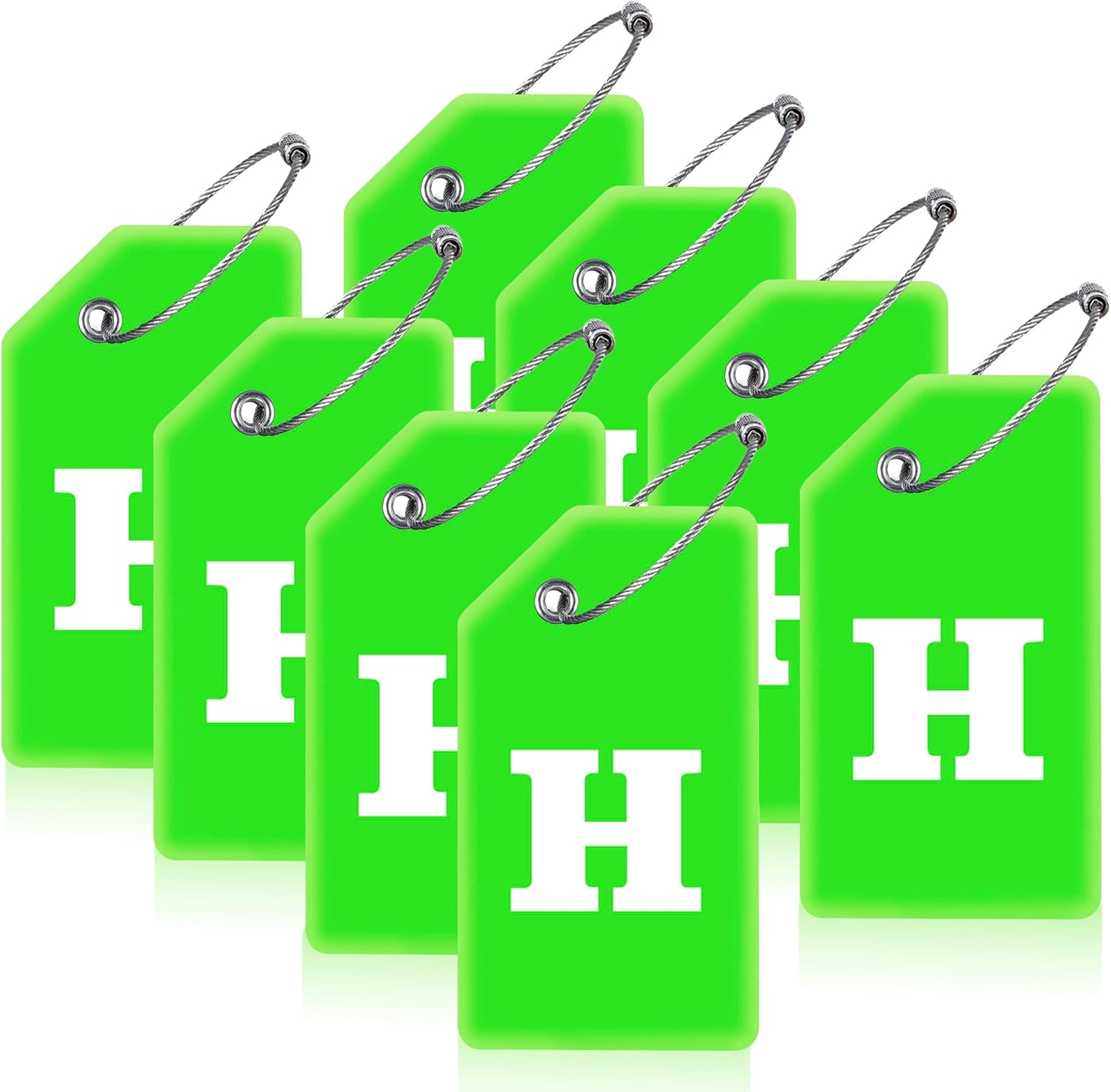 8 Pcs Luggage Tags for Suitcases, 26 Initial Letter Travel Luggage Baggage Identification Labels ID Tags Fully Bendable Tags with Stainless Steel Loop (Letter H, Green)