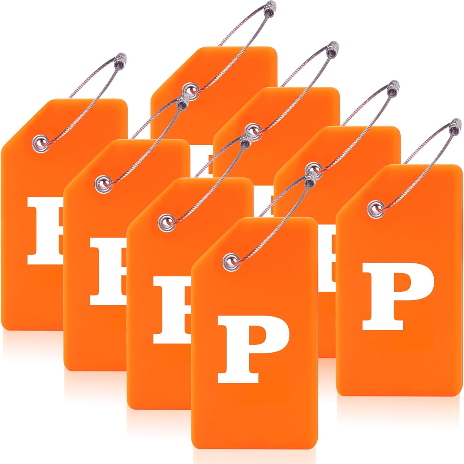 8 Pcs Luggage Tags for Suitcases, 26 Initial Letter Travel Luggage Baggage Identification Labels ID Tags Fully Bendable Tags with Stainless Steel Loop (Letter P, Orange)